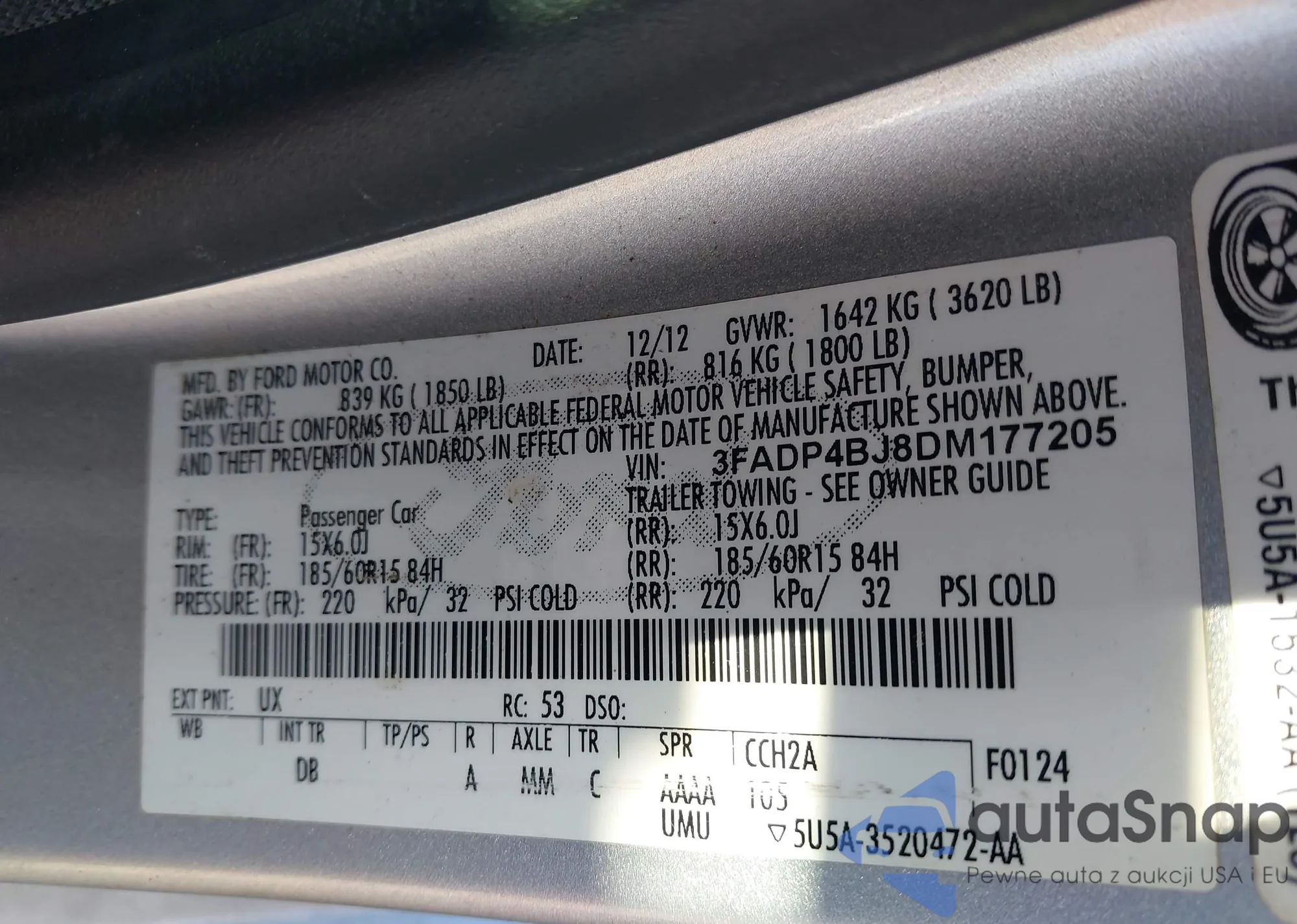 LOT: 44375175 VIN: 3FADP4BJ8DM177205
