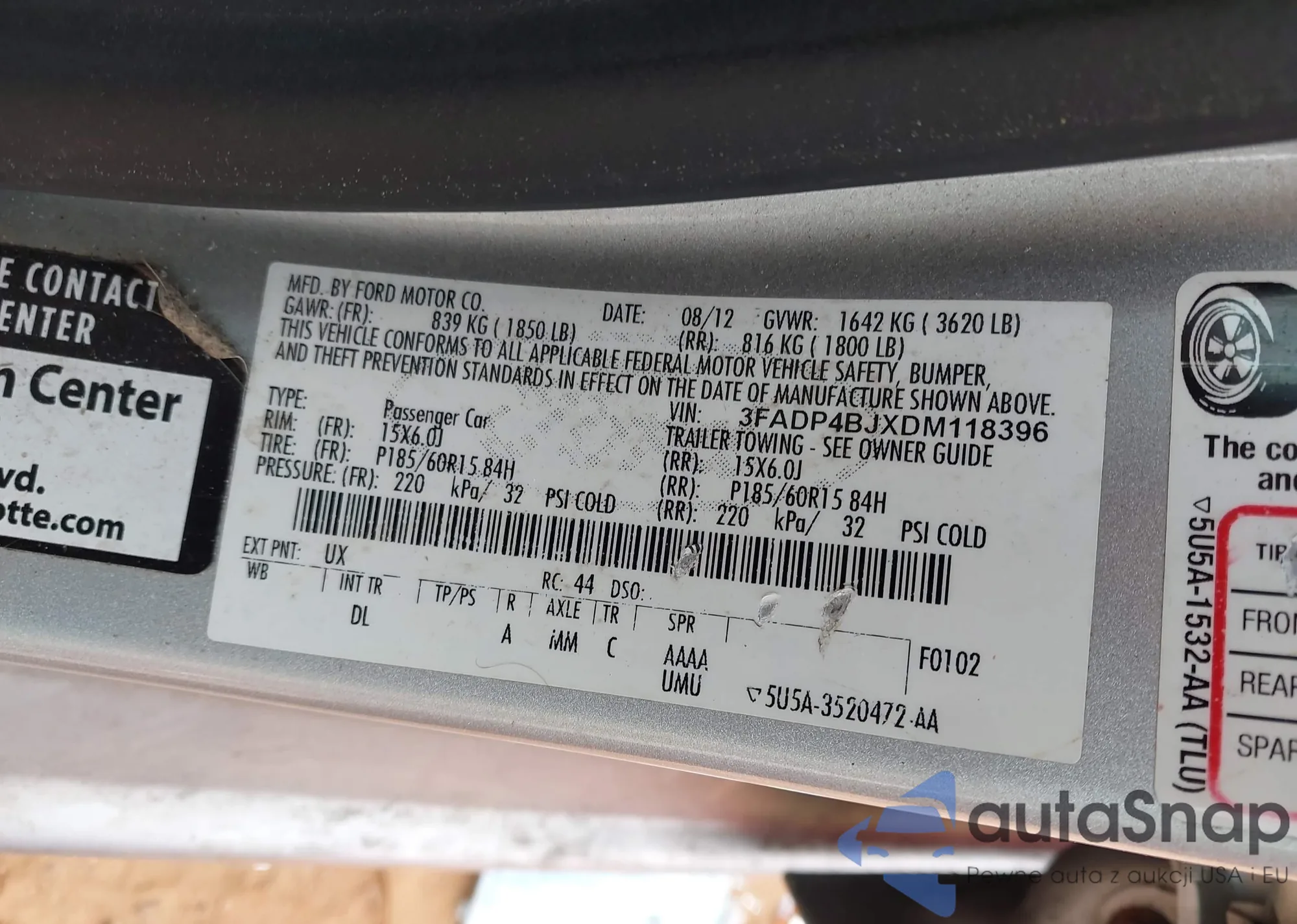 • VIN 3FADP4BJXDM118396