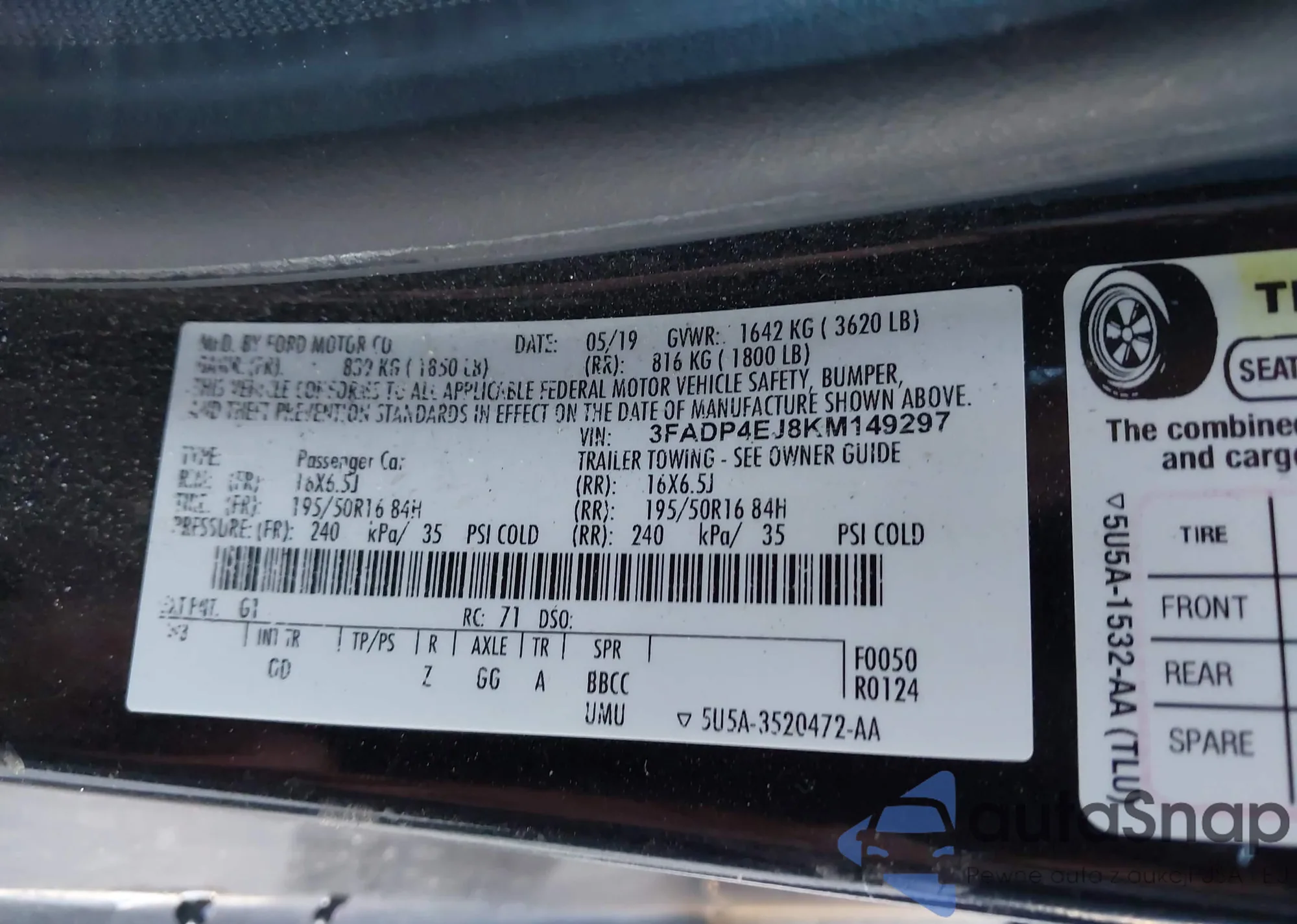 • VIN 3FADP4EJ8KM149297