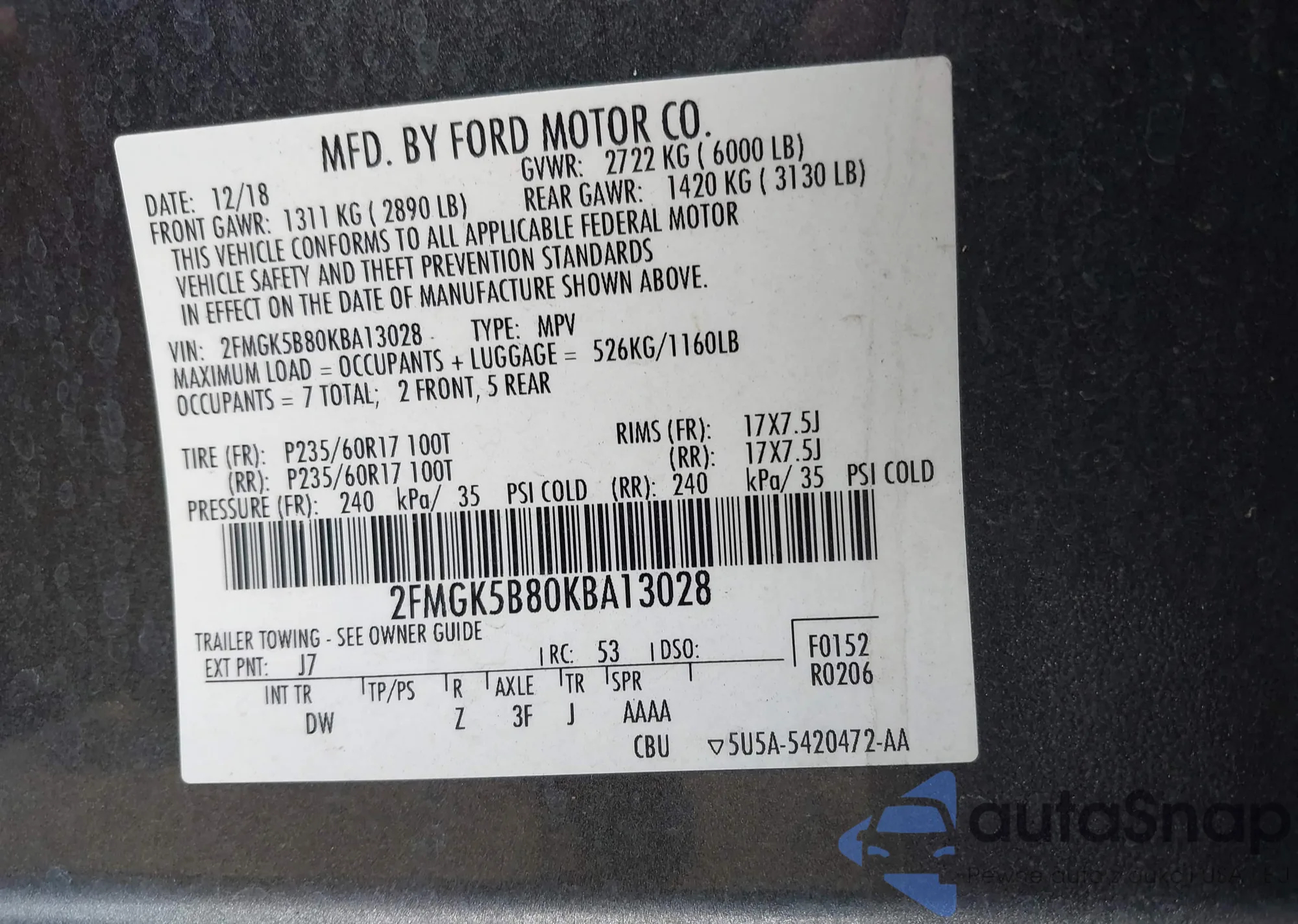 • VIN 2FMGK5B80KBA13028