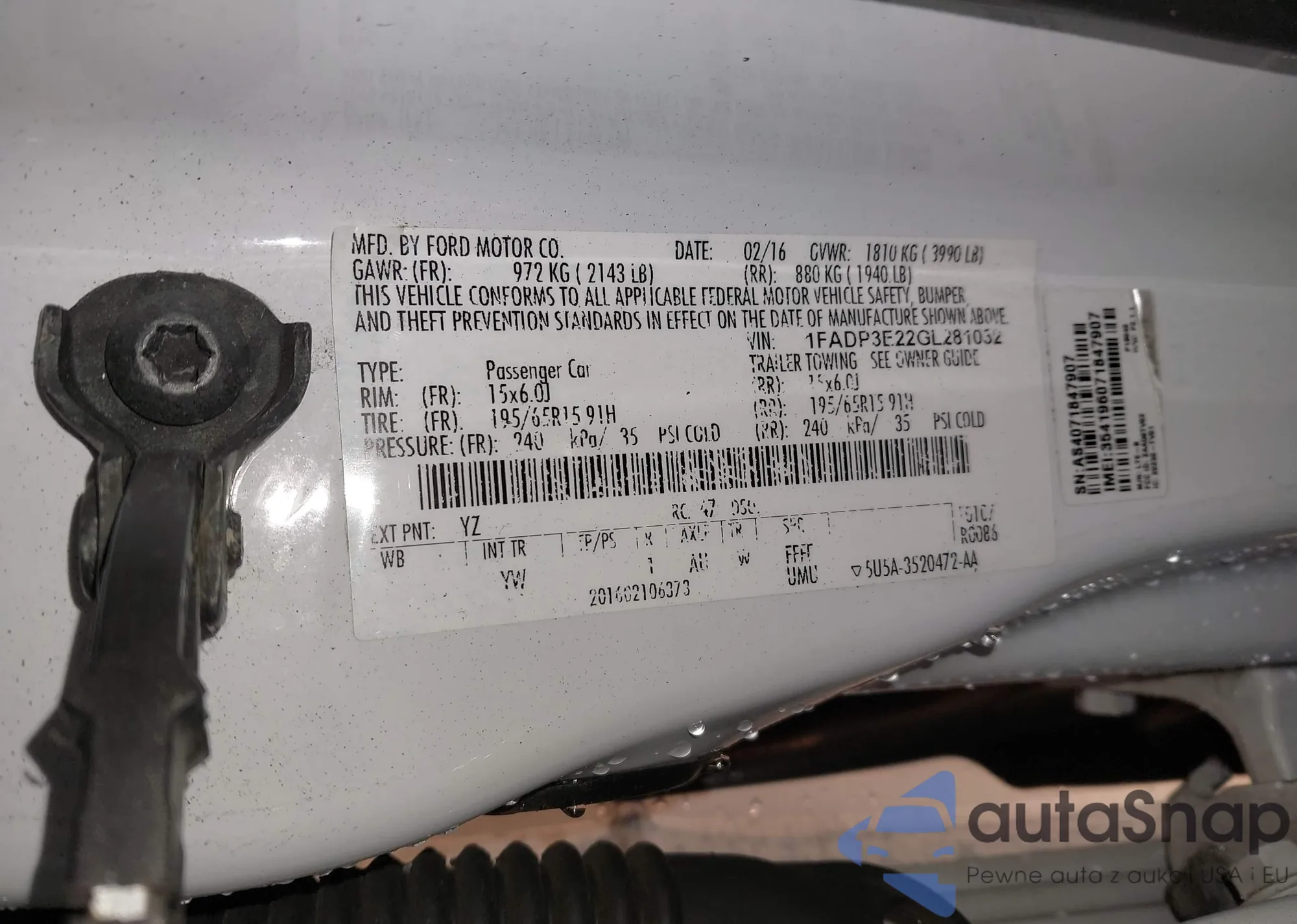 LOT: 44153372 VIN: 1FADP3E22GL281032