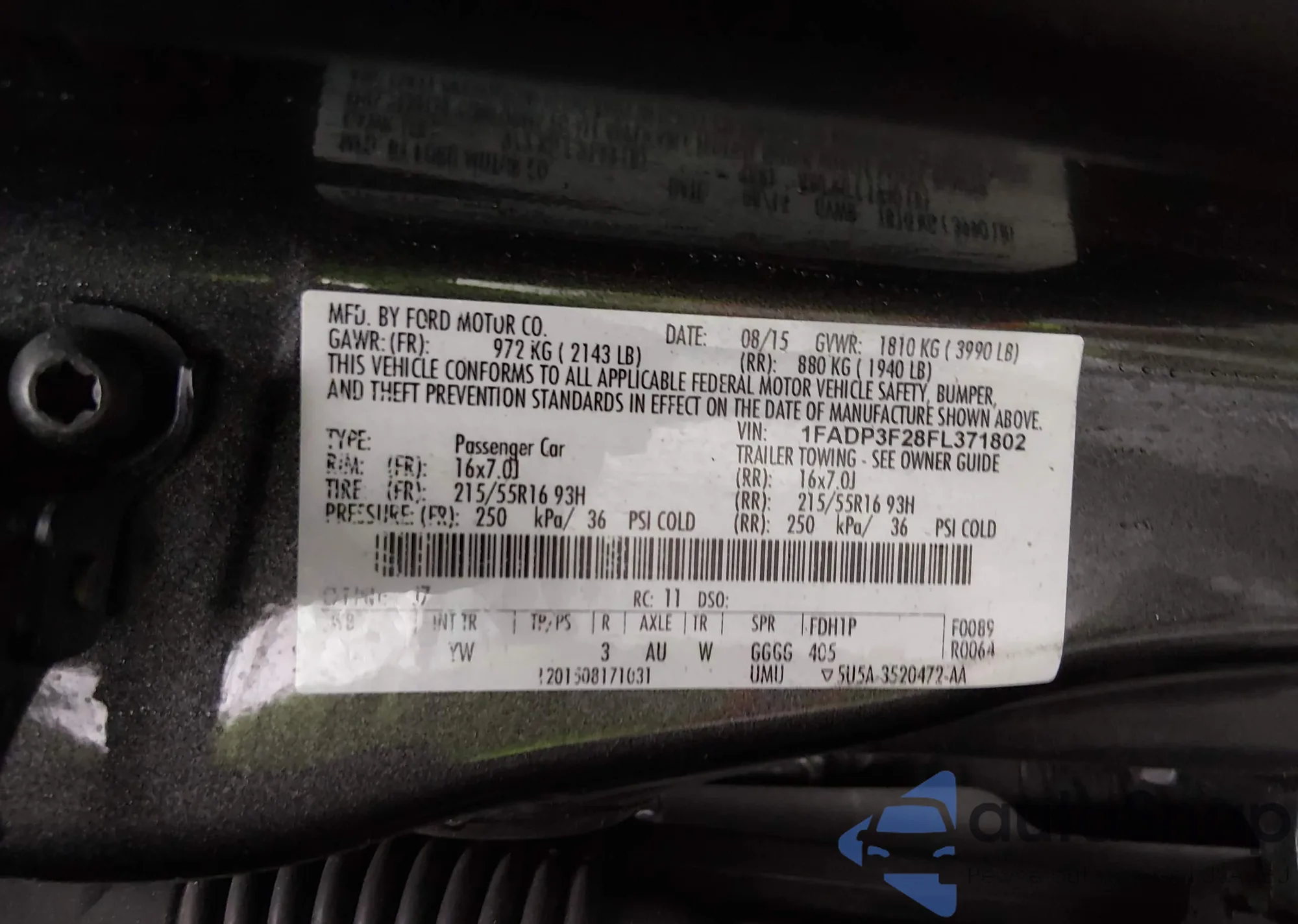 LOT: 43965055 VIN: 1FADP3F28FL371802