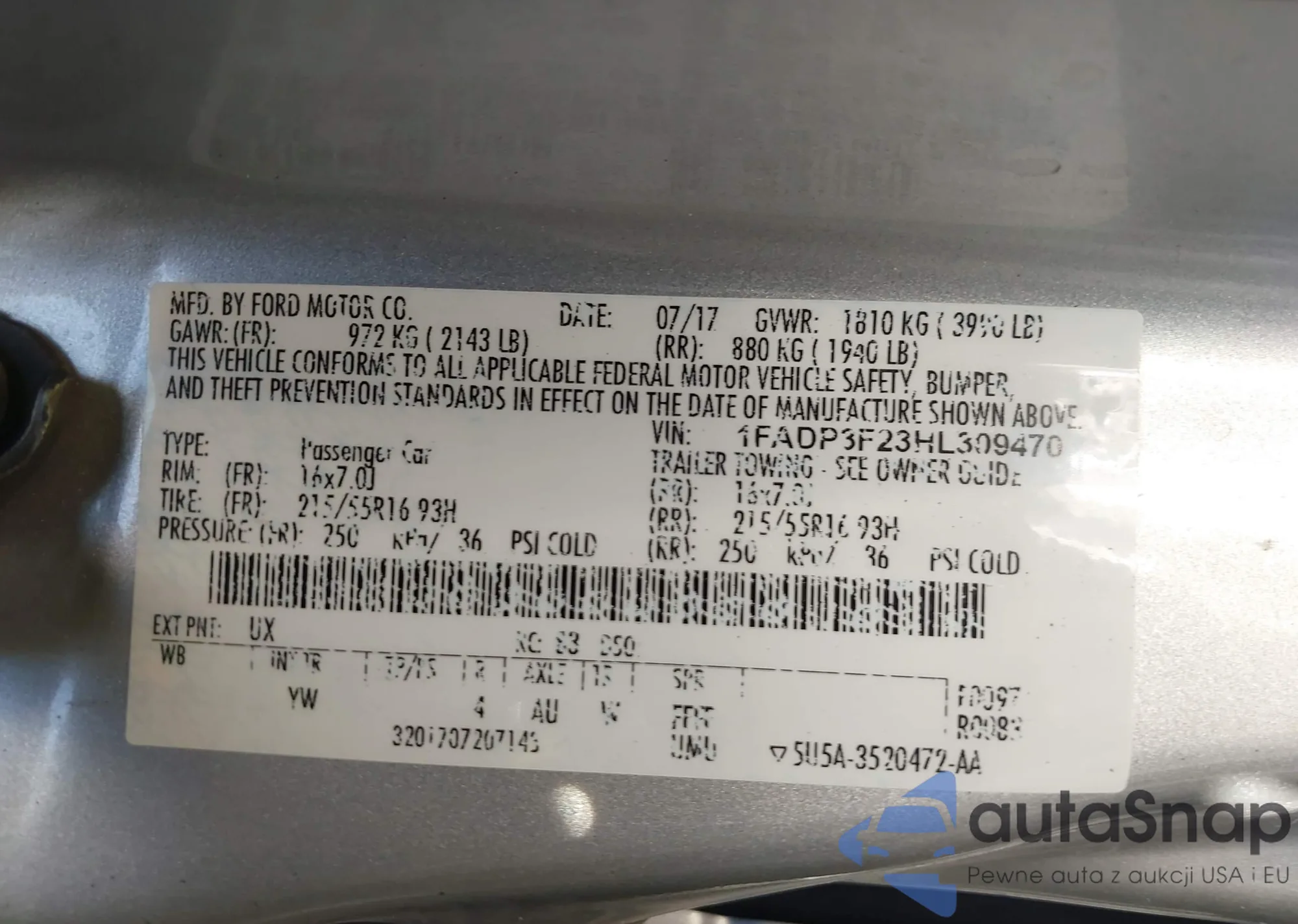 • VIN 1FADP3F23HL309470