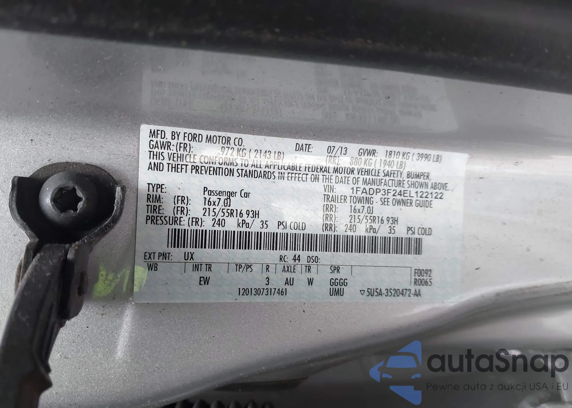 LOT: 44301632 VIN: 1FADP3F24EL122122