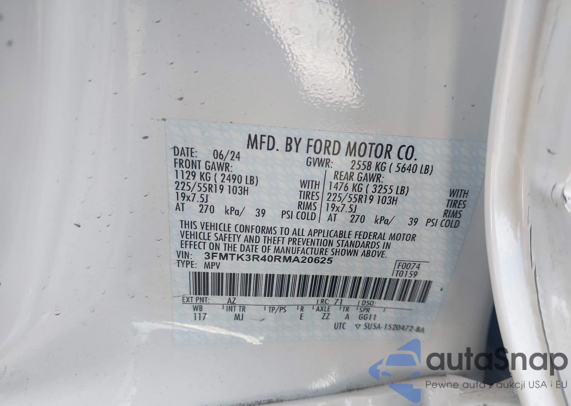 • VIN 3FMTK3R40RMA20625