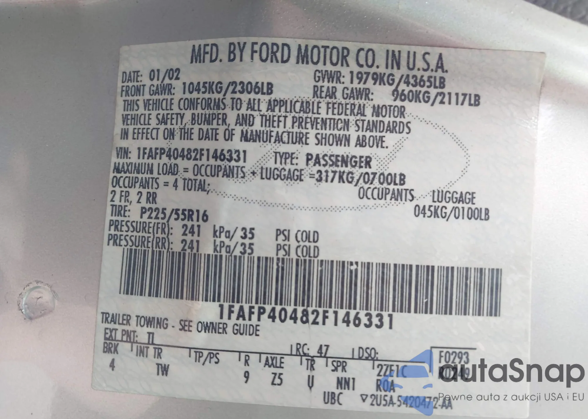 LOT: 44468961 VIN: 1FAFP42X02F200177