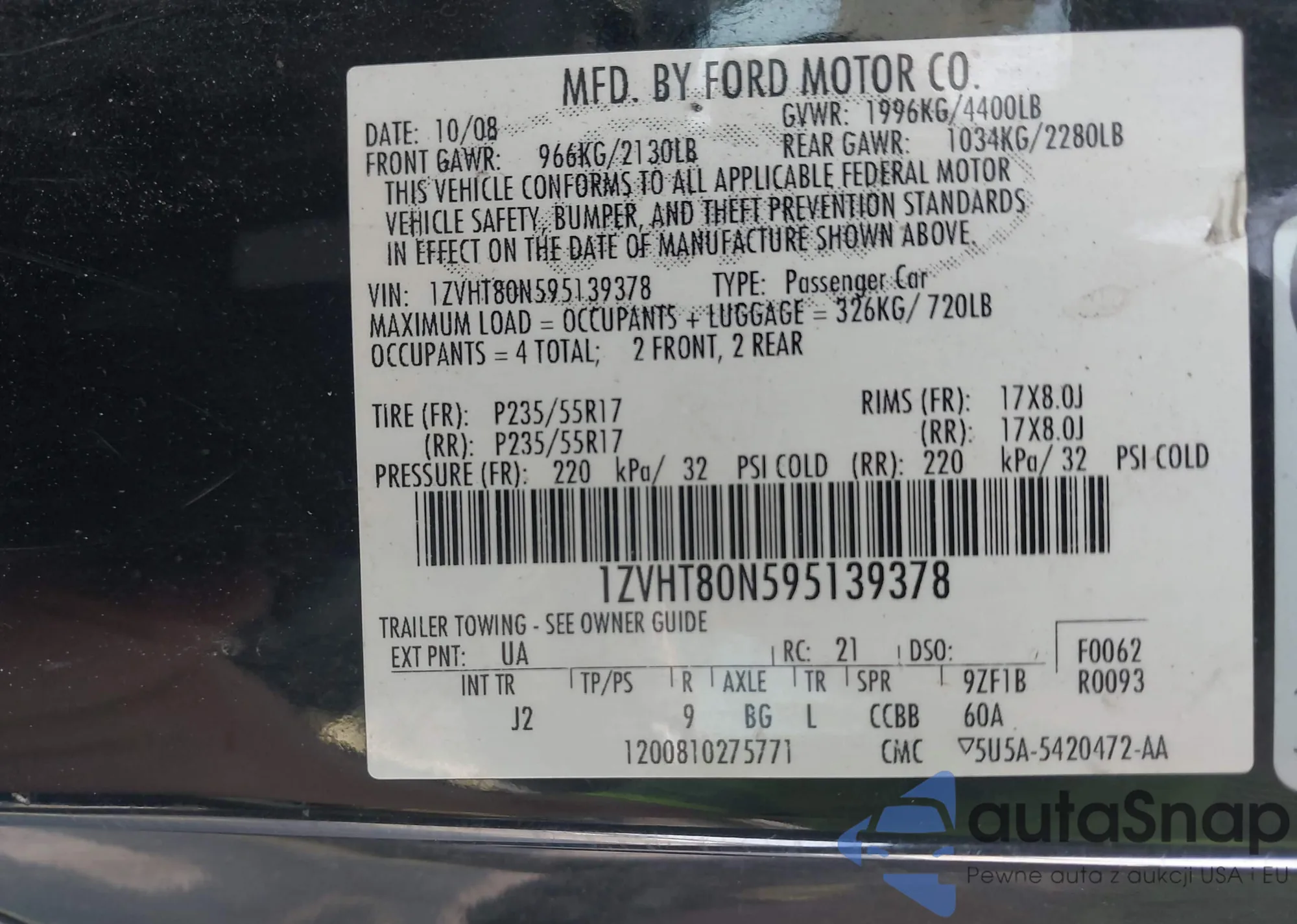 • VIN 1ZVHT80N595139378