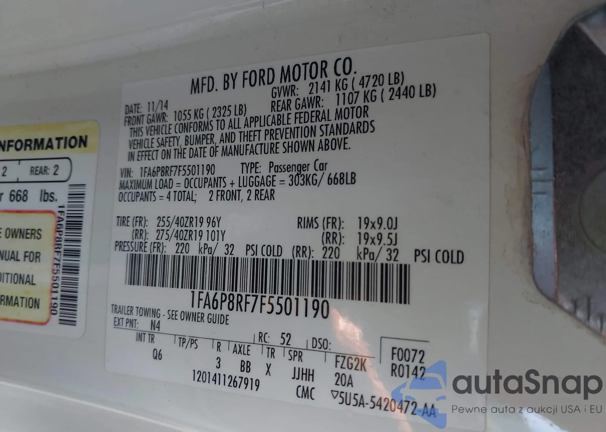 • VIN 1FA6P8RF7F5501190
