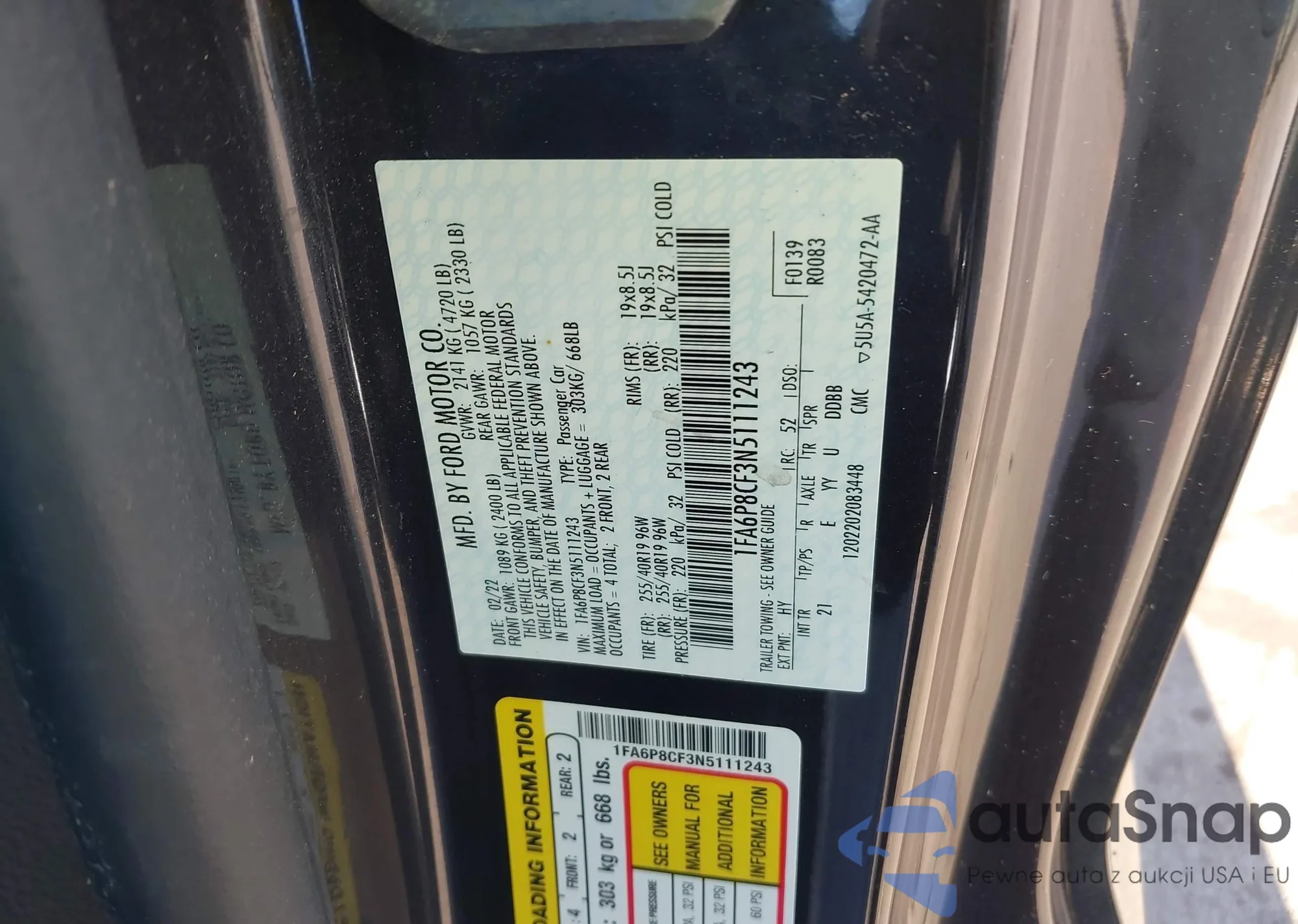 • VIN 1FA6P8CF3N5111243