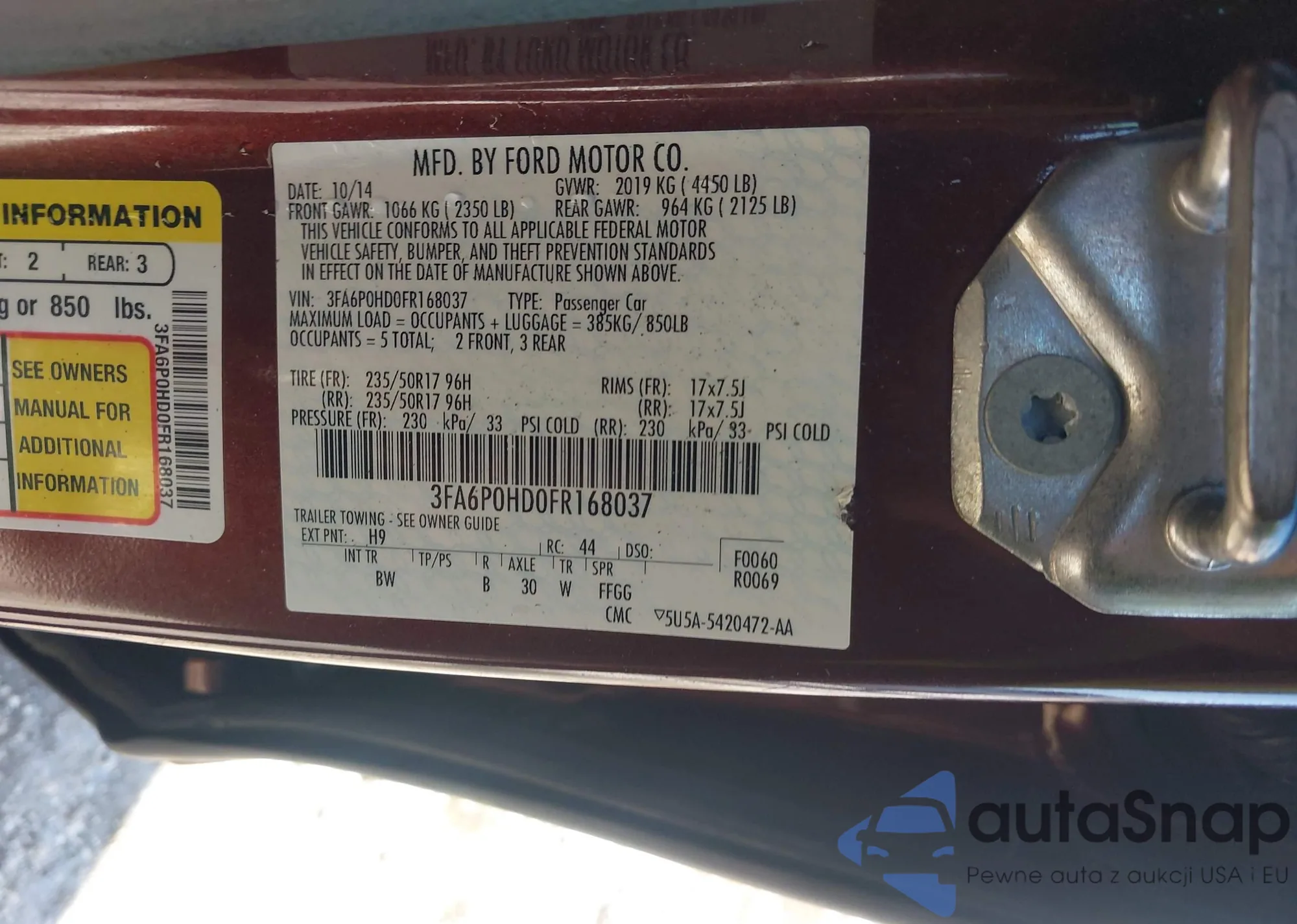 LOT: 43912247 VIN: 3FA6P0HD0FR168037