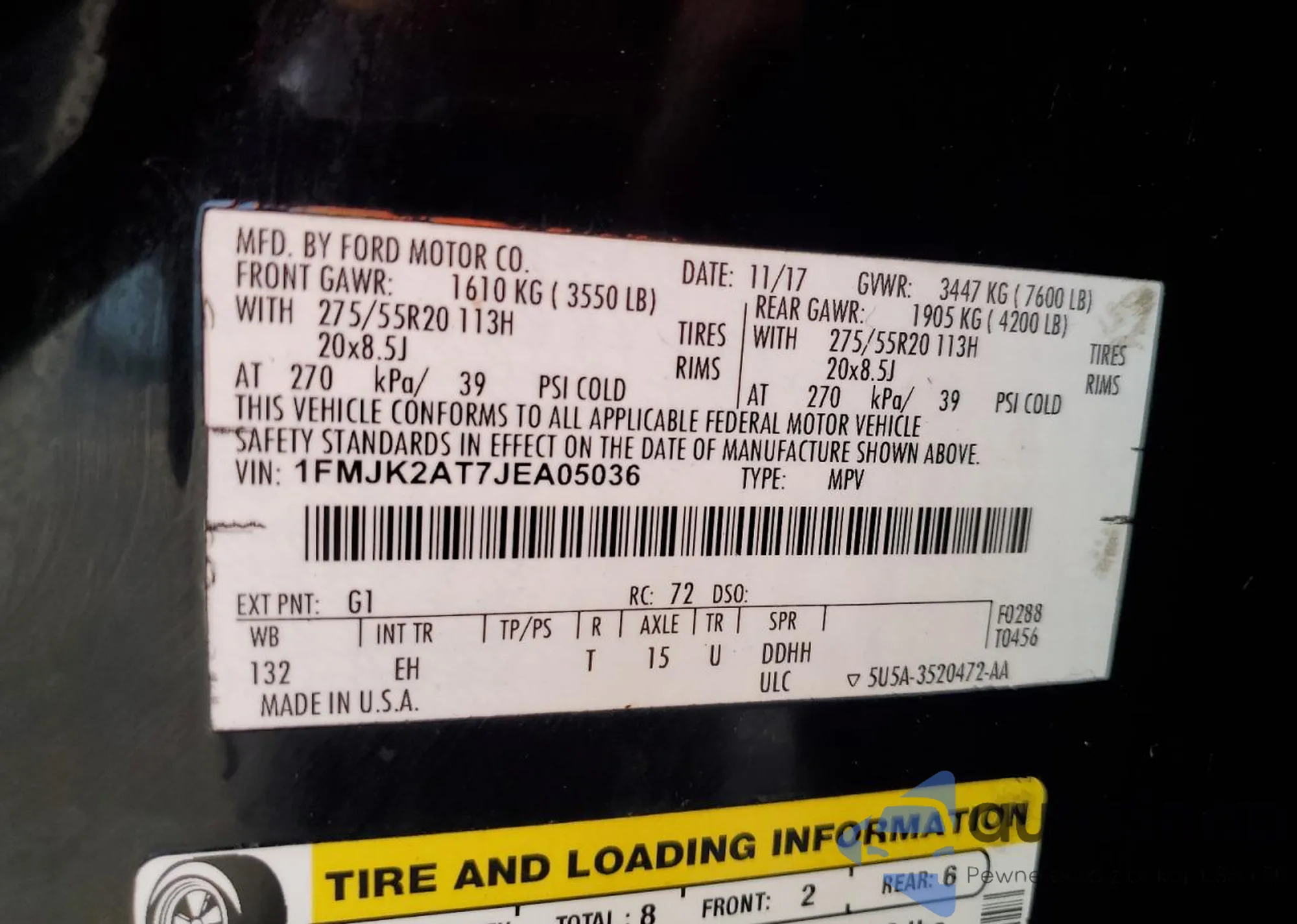 • VIN 1FMJK2AT7JEA05036