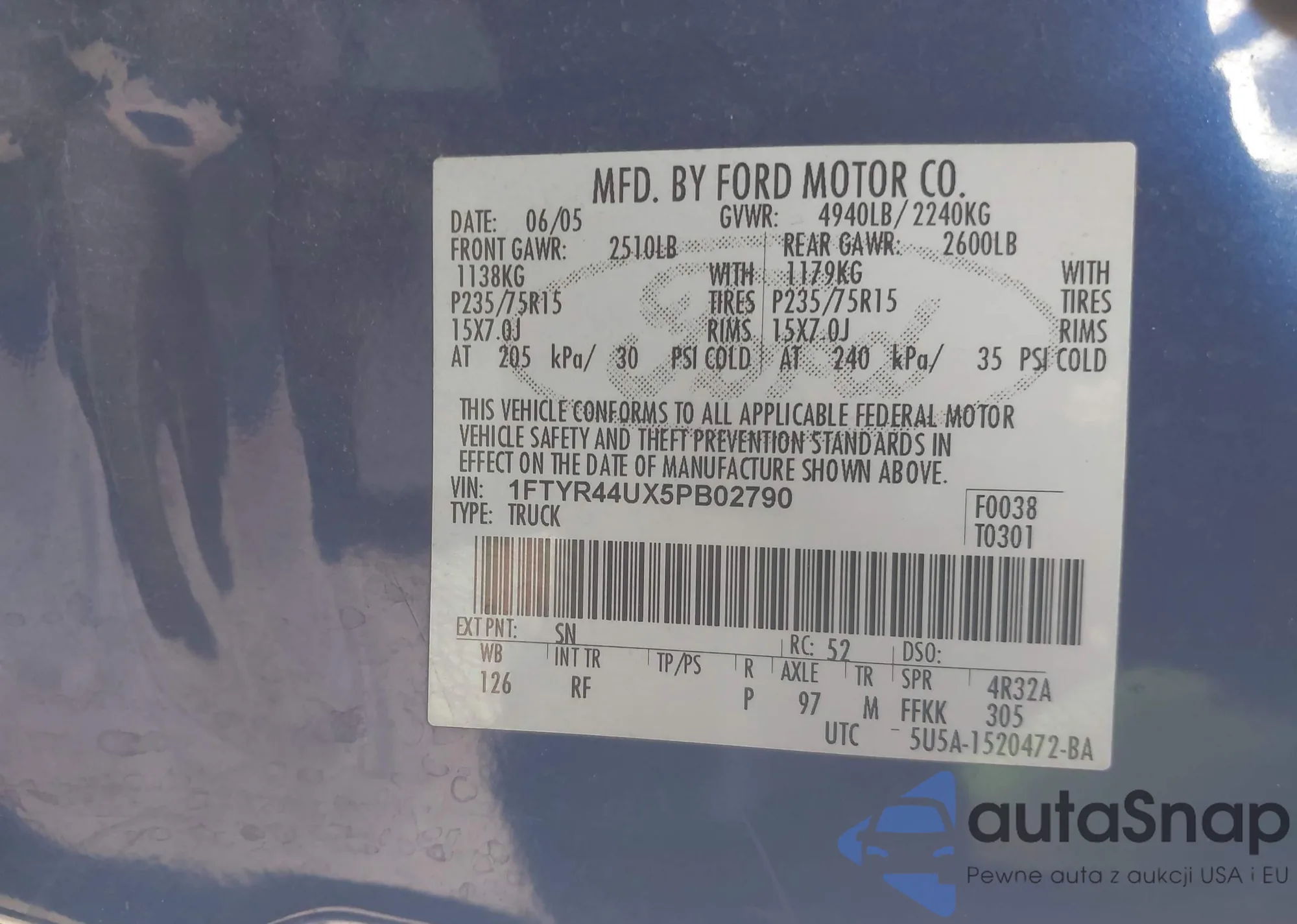 • VIN 1FTYR44UX5PB02790