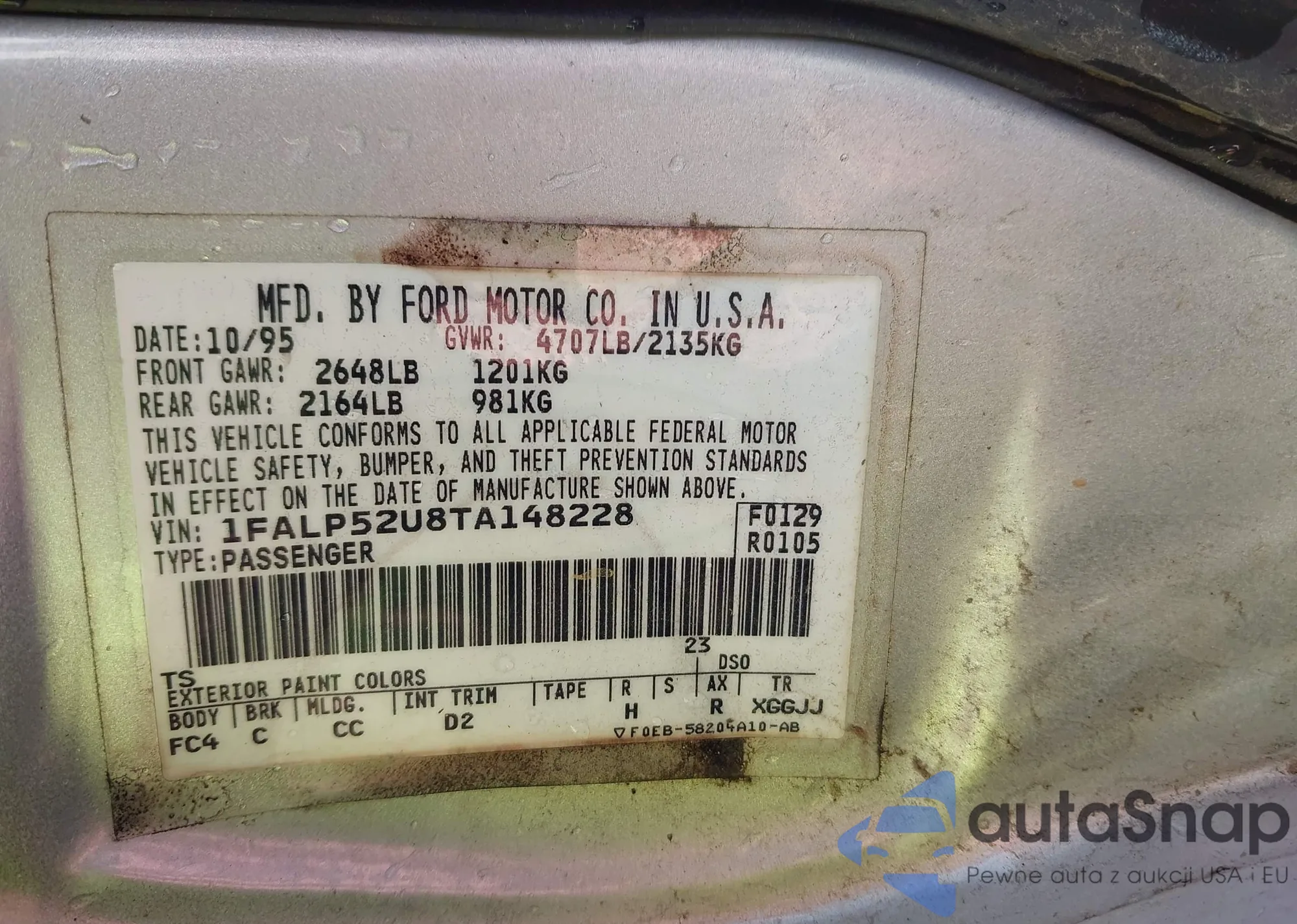• VIN 1FALP52U8TA148228