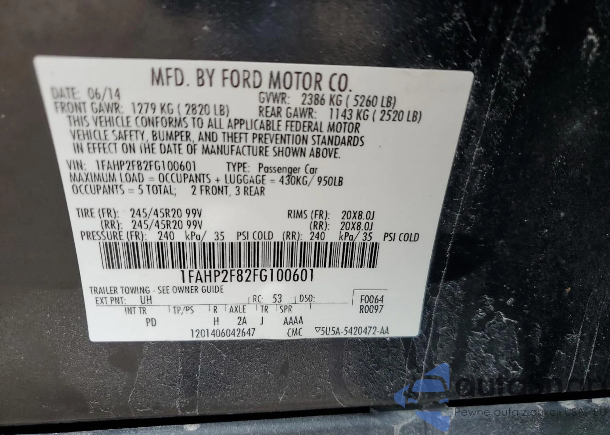 • VIN 1FAHP2F82FG100601