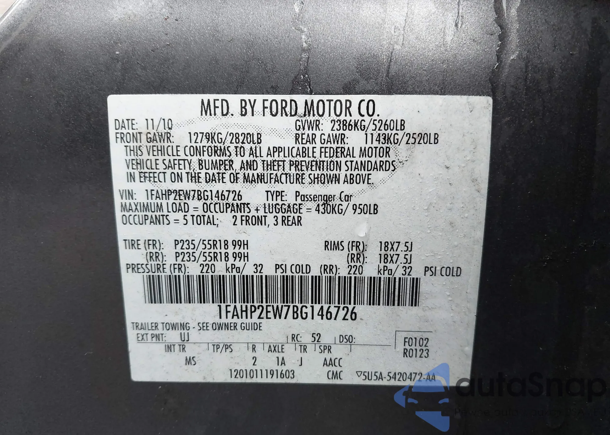 LOT: 44190053 VIN: 1FAHP2EW7BG146726