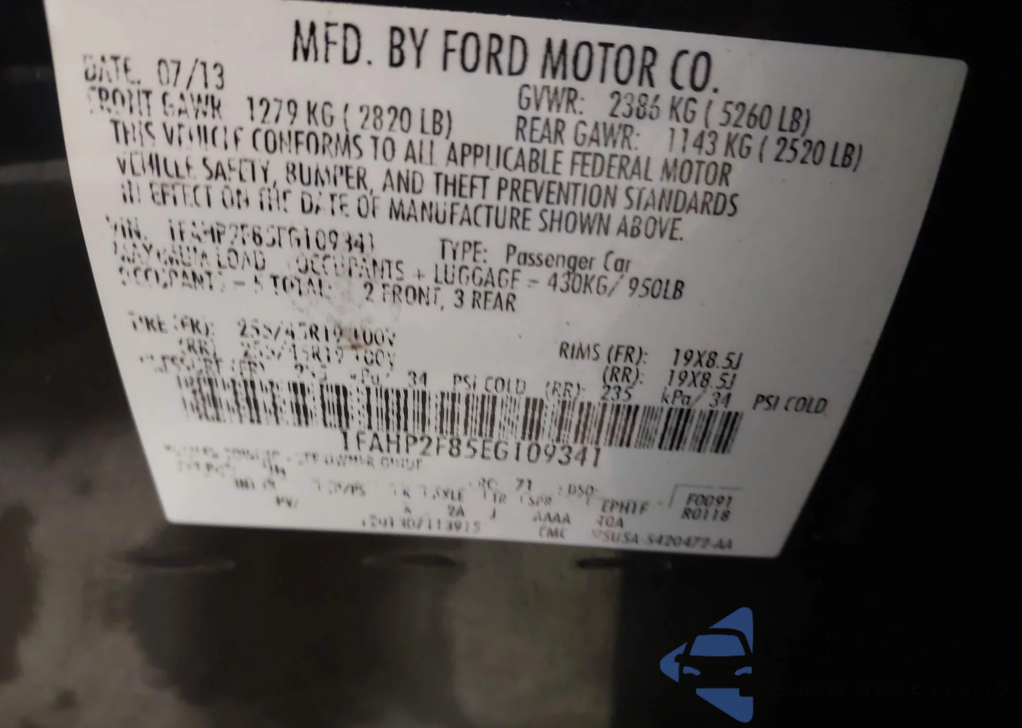 • VIN 1FAHP2F85EG109341