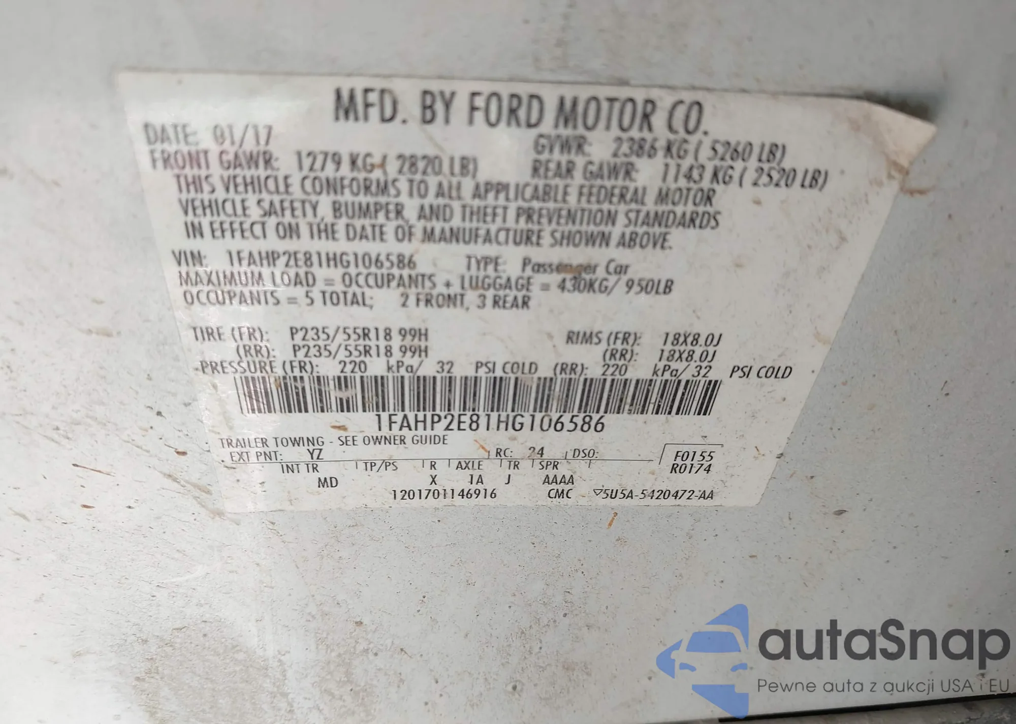 • VIN 1FAHP2E81HG106586