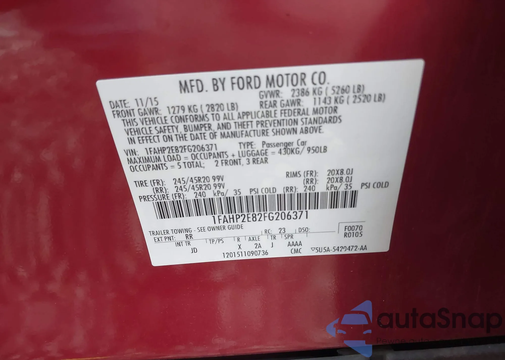 • VIN 1FAHP2E82FG206371