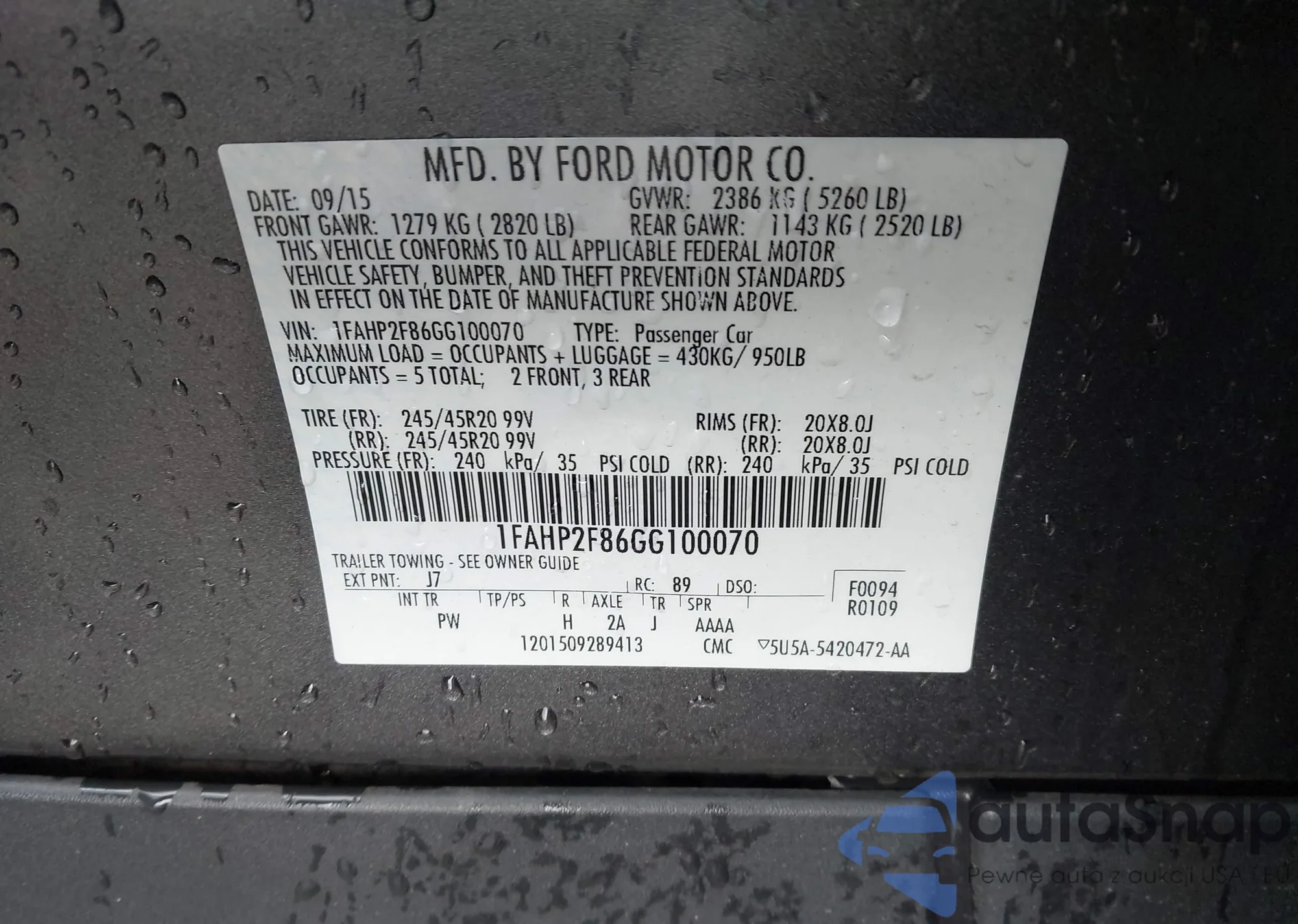 LOT: 96126855 VIN: 1FAHP2D87FG135217