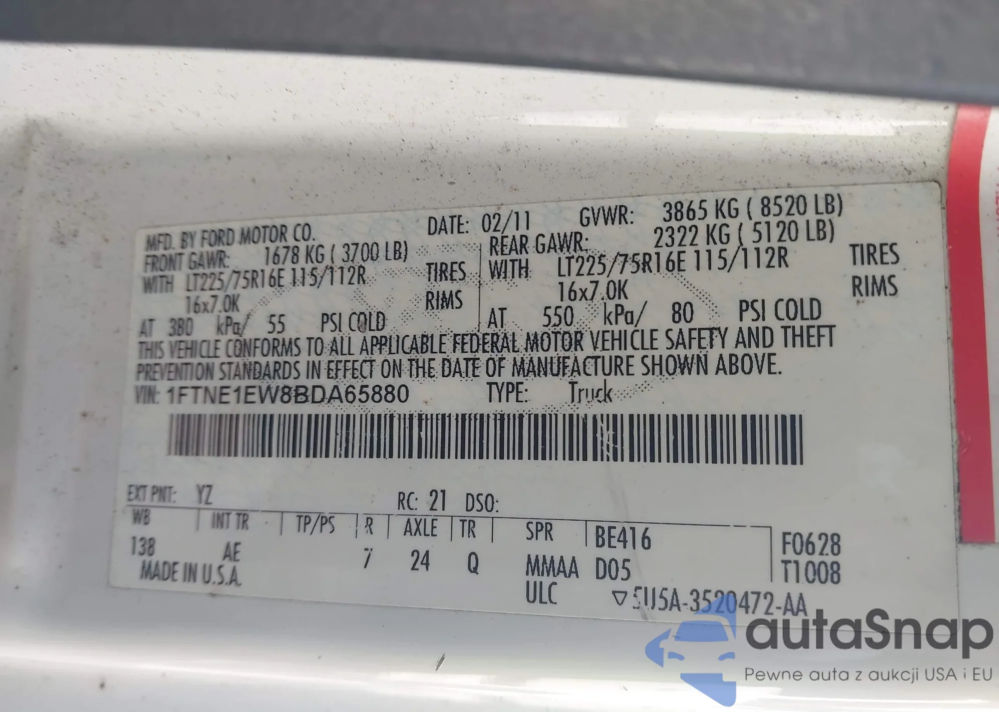 • VIN 1FTNE1EW8BDA65880