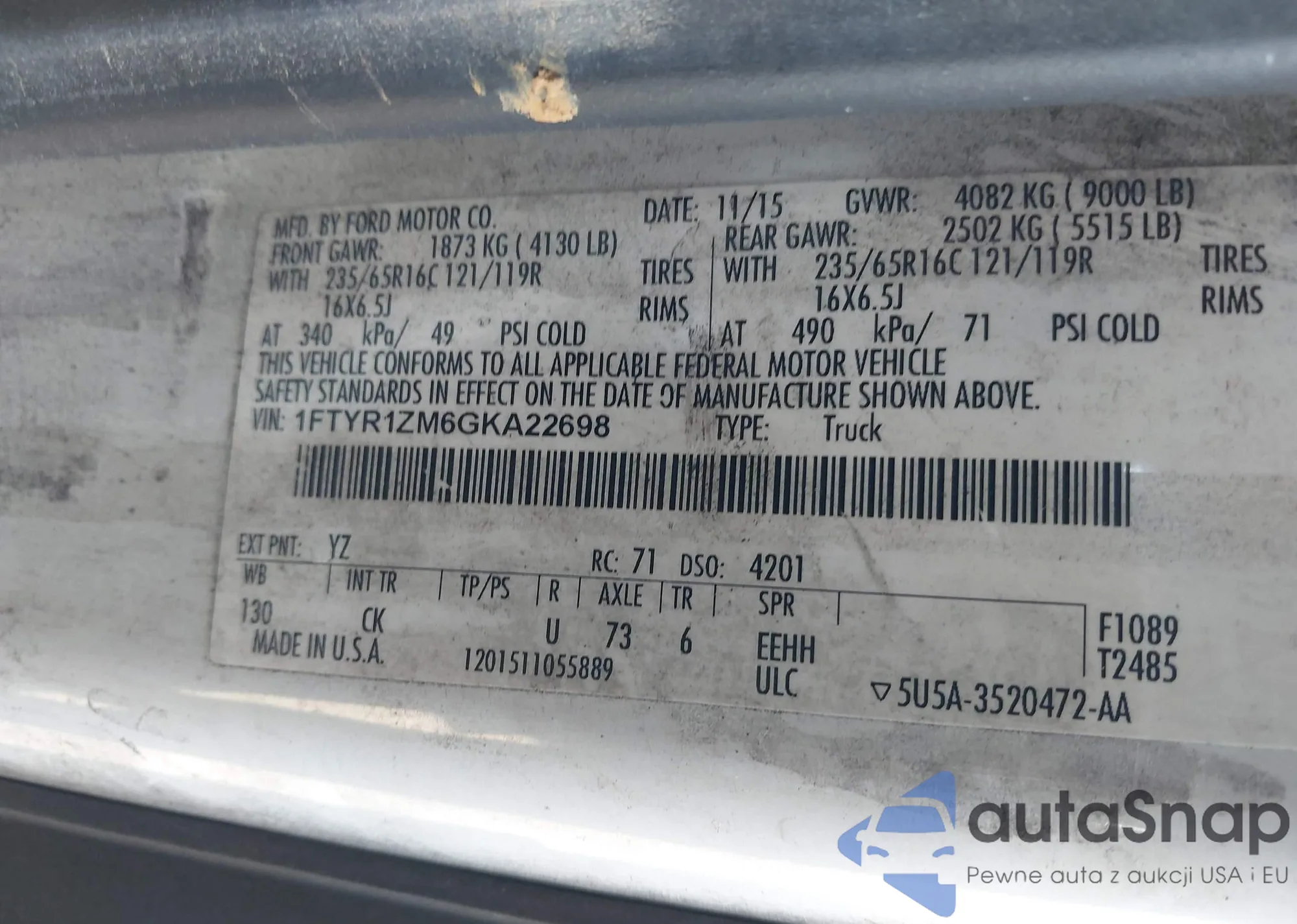 • VIN 1FTYR1ZM6GKA22698