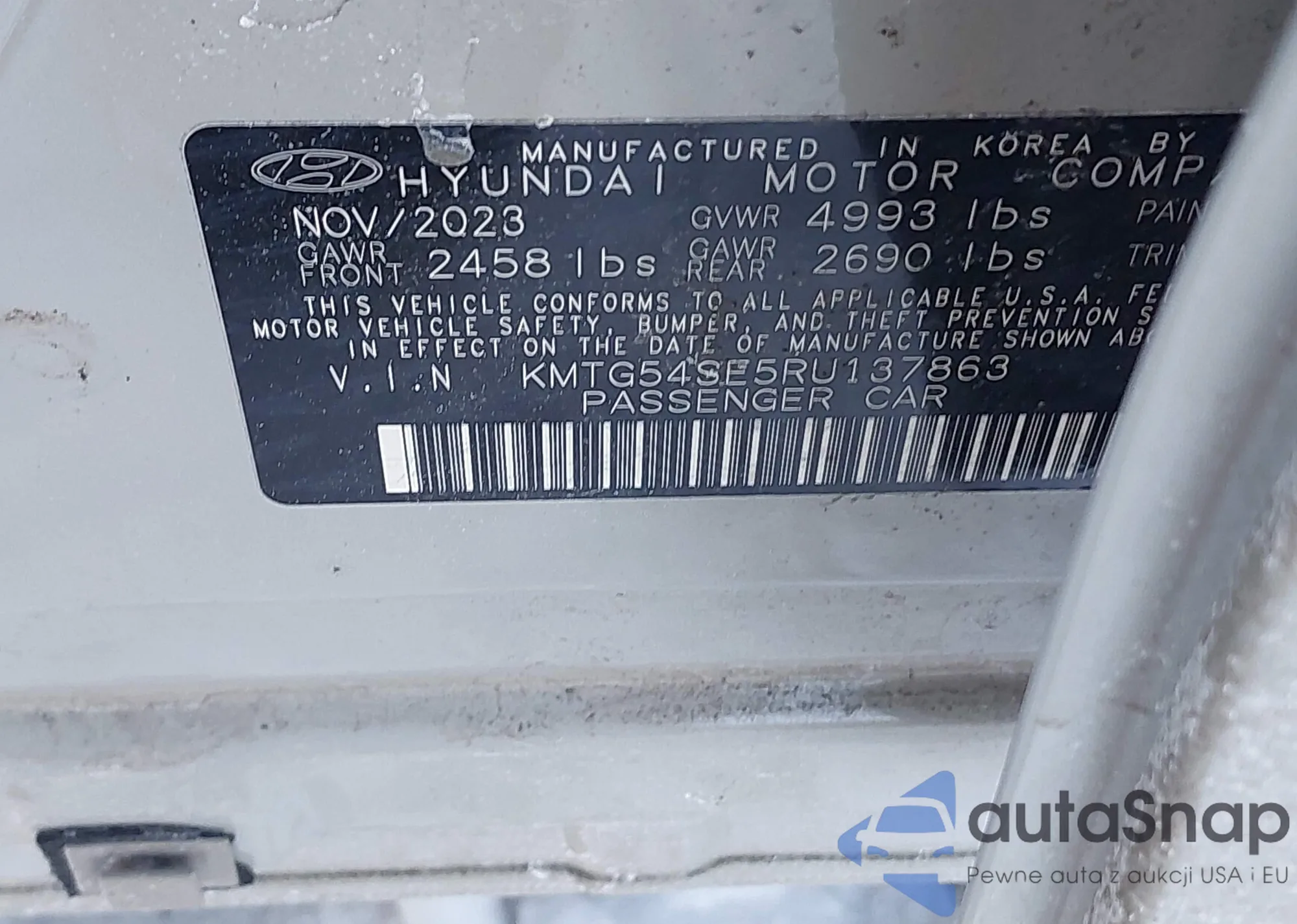• VIN KMTG54SE5RU137863