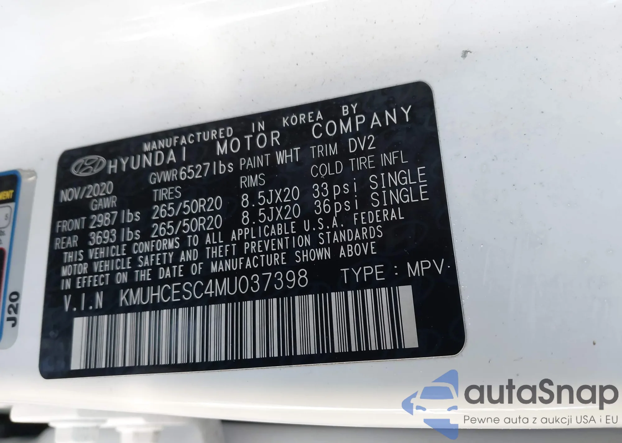 LOT: 44074246 VIN: KMUHCESC4MU037398