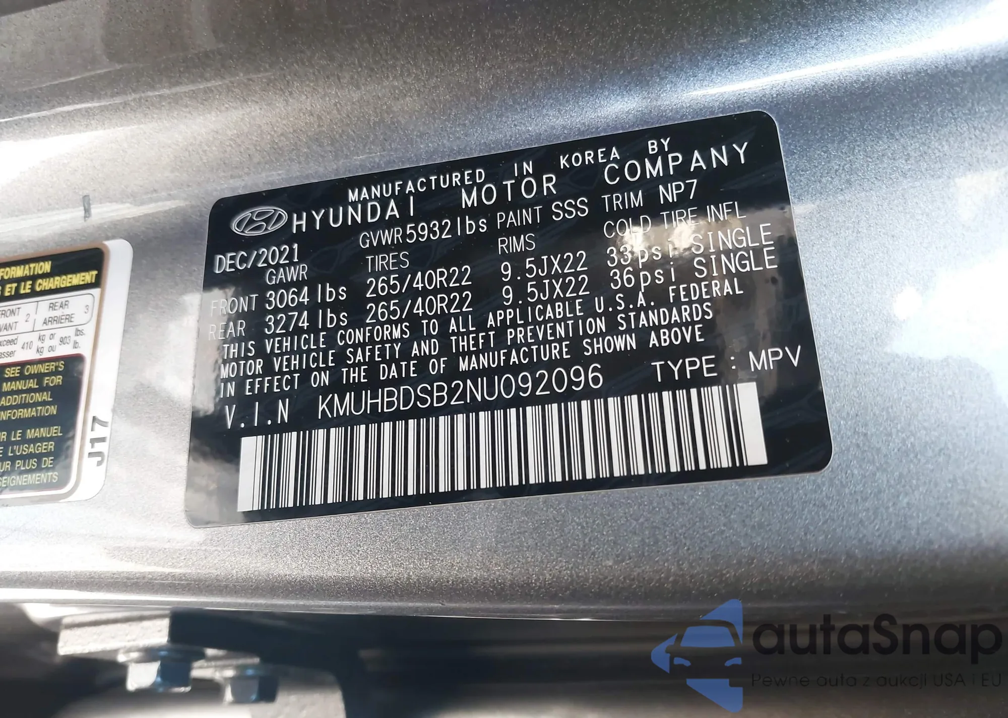 LOT: 44199664 VIN: KMUHBDSB2NU092096