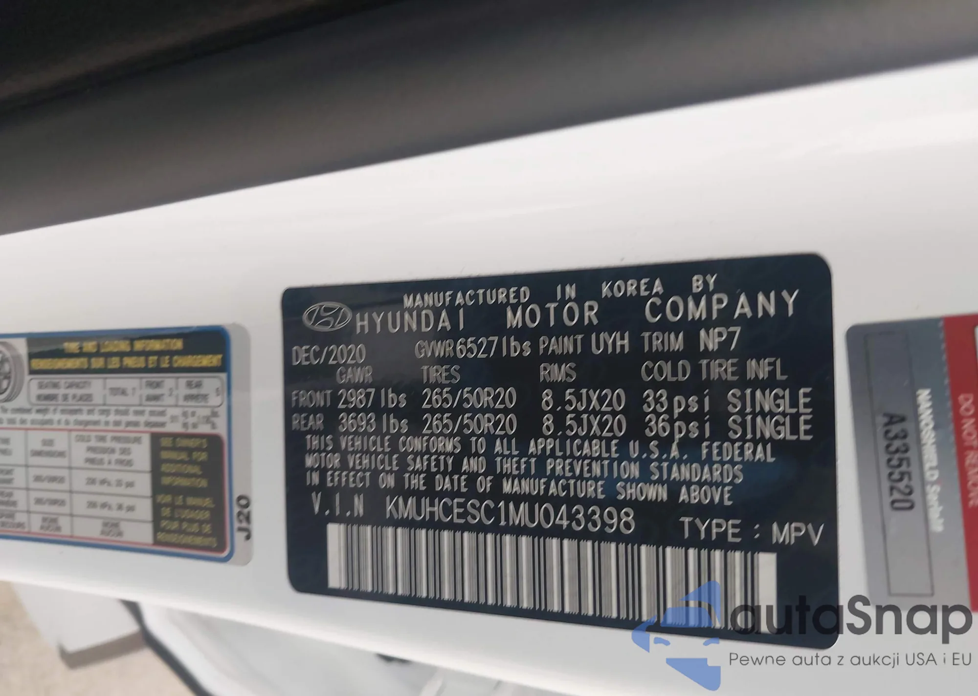 LOT: 44233663 VIN: KMUHCESC1MU043398