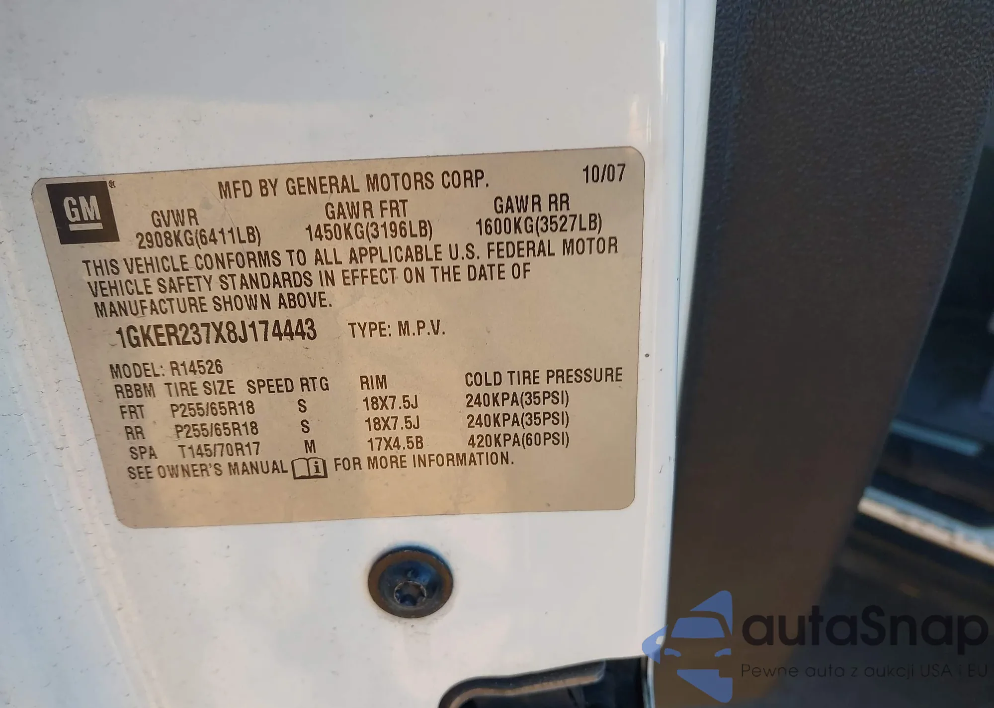 • VIN 1GKER237X8J174443
