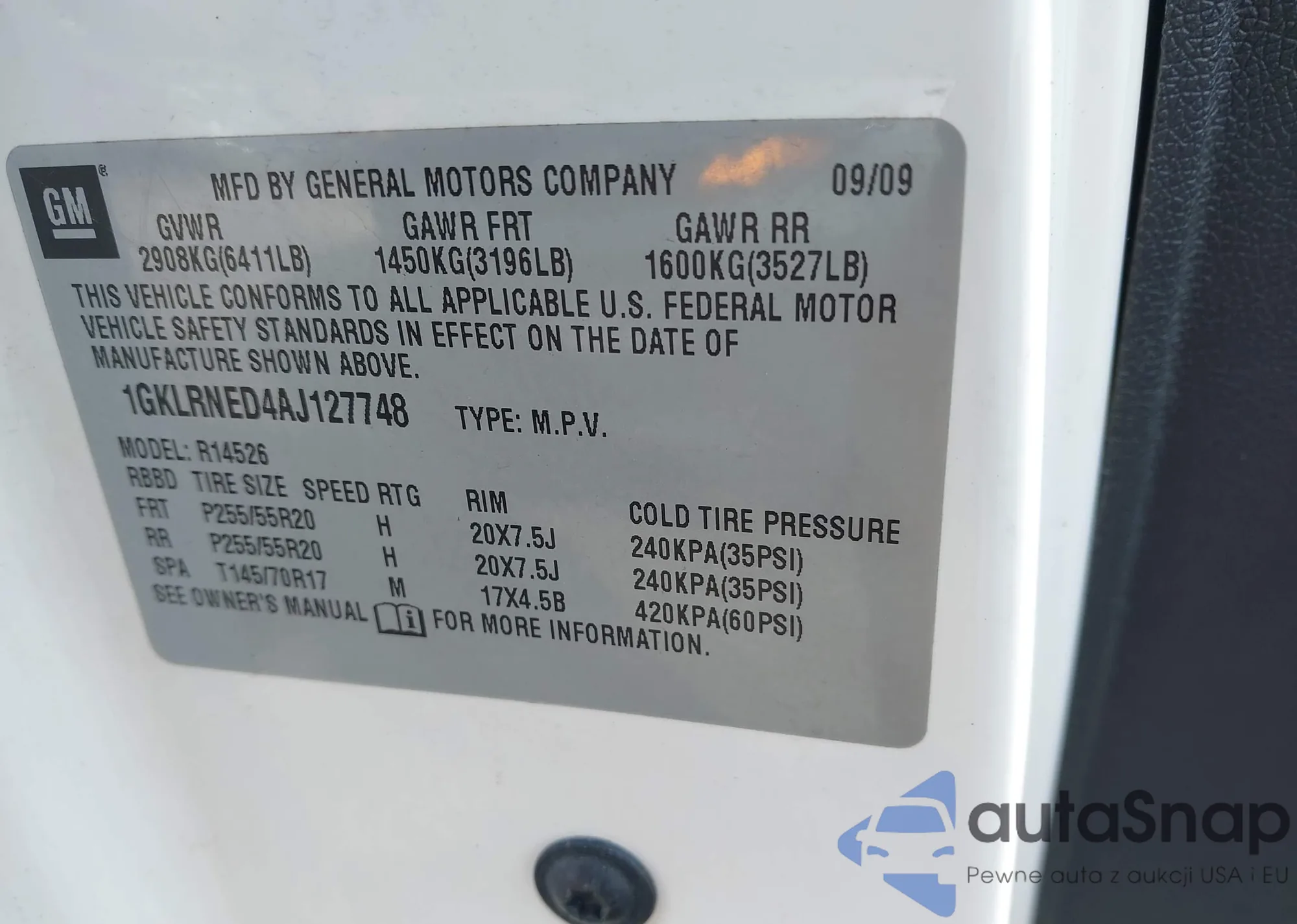 • VIN 1GKLRNED4AJ127748