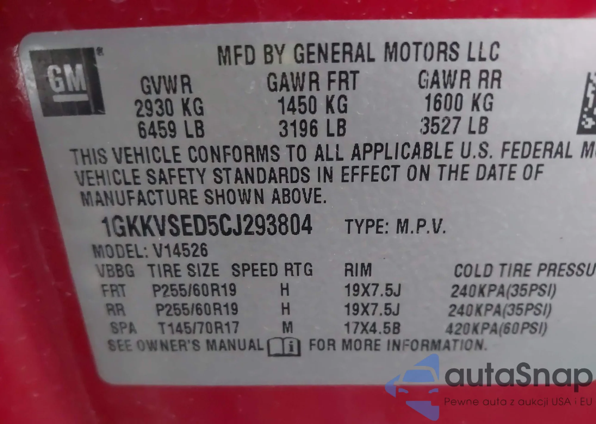 • VIN 1GKKVSED5CJ293804