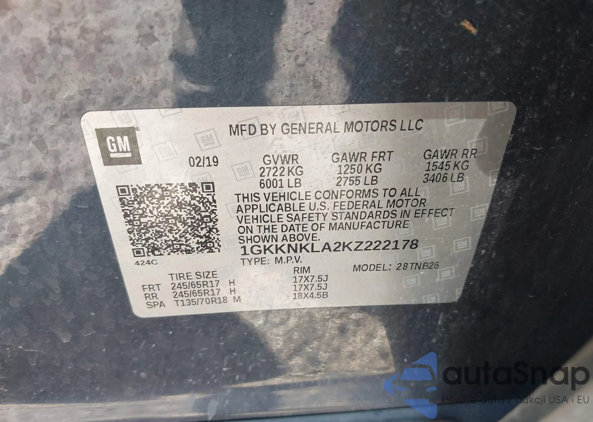 • VIN 1GKKNKLA2KZ222178