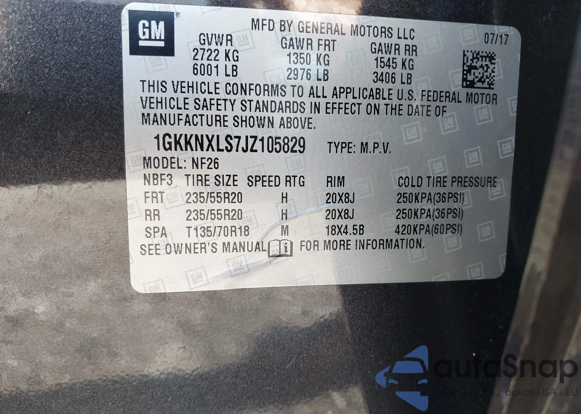 LOT: 43565414 VIN: 1GKKNXLS7JZ105829