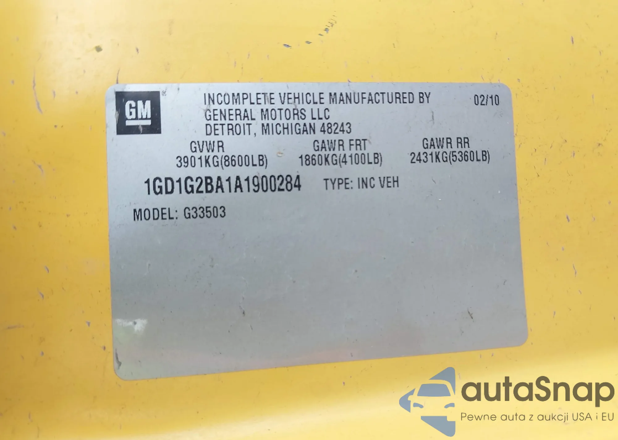 • VIN 1GD1G2BA1A1900284