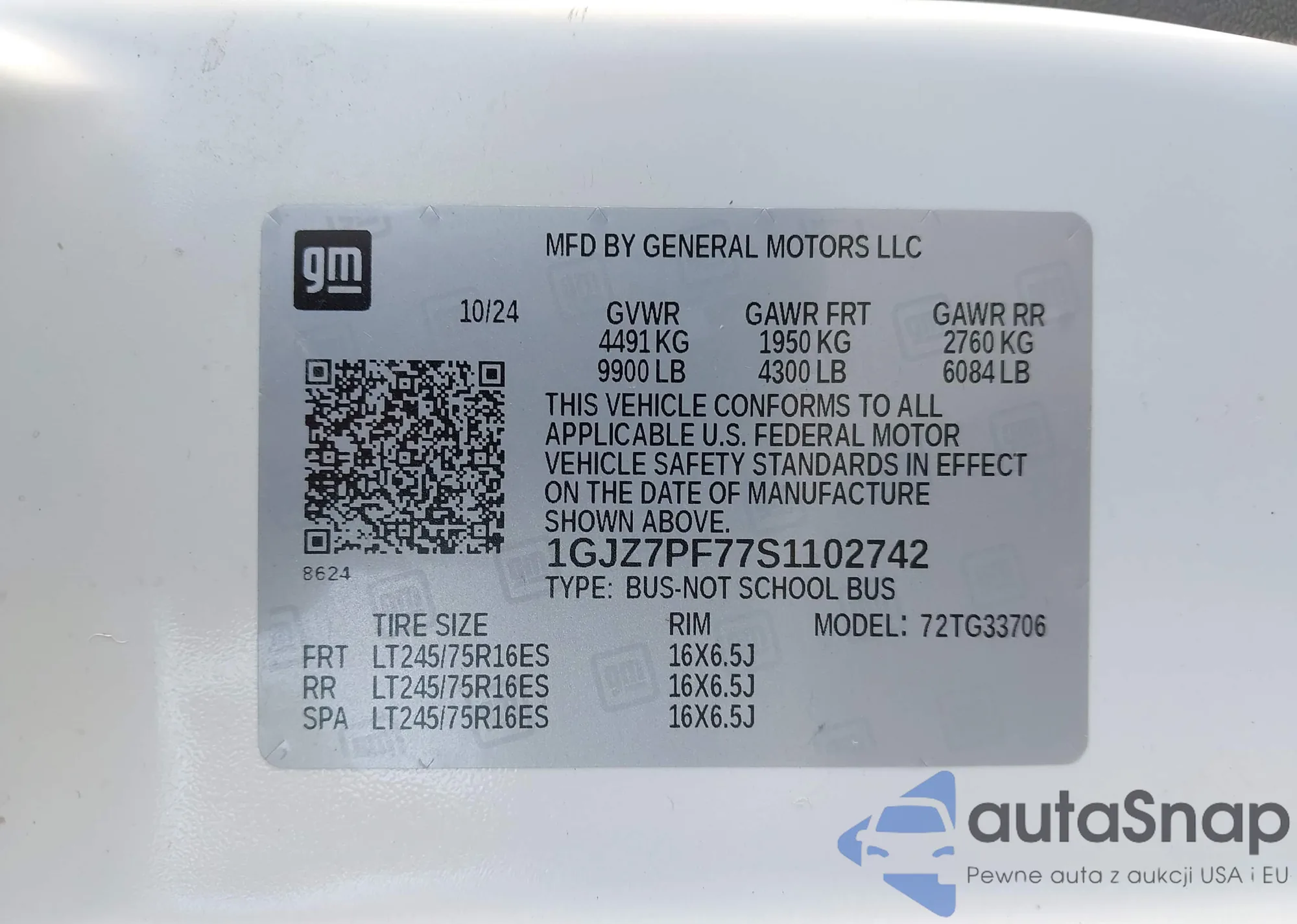 • VIN 1GJZ7PF77S1102742