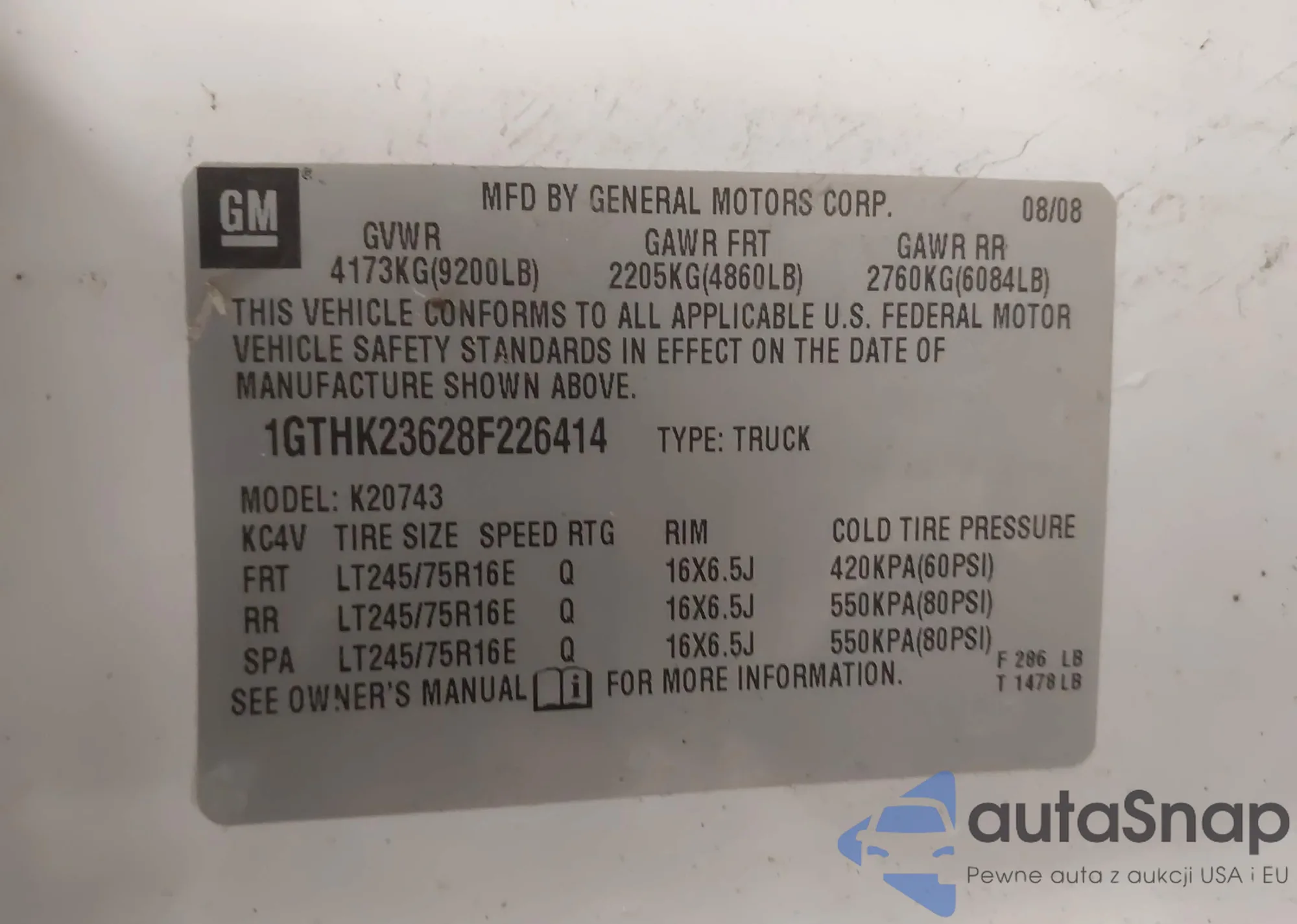 • VIN 1GTHK23628F226414