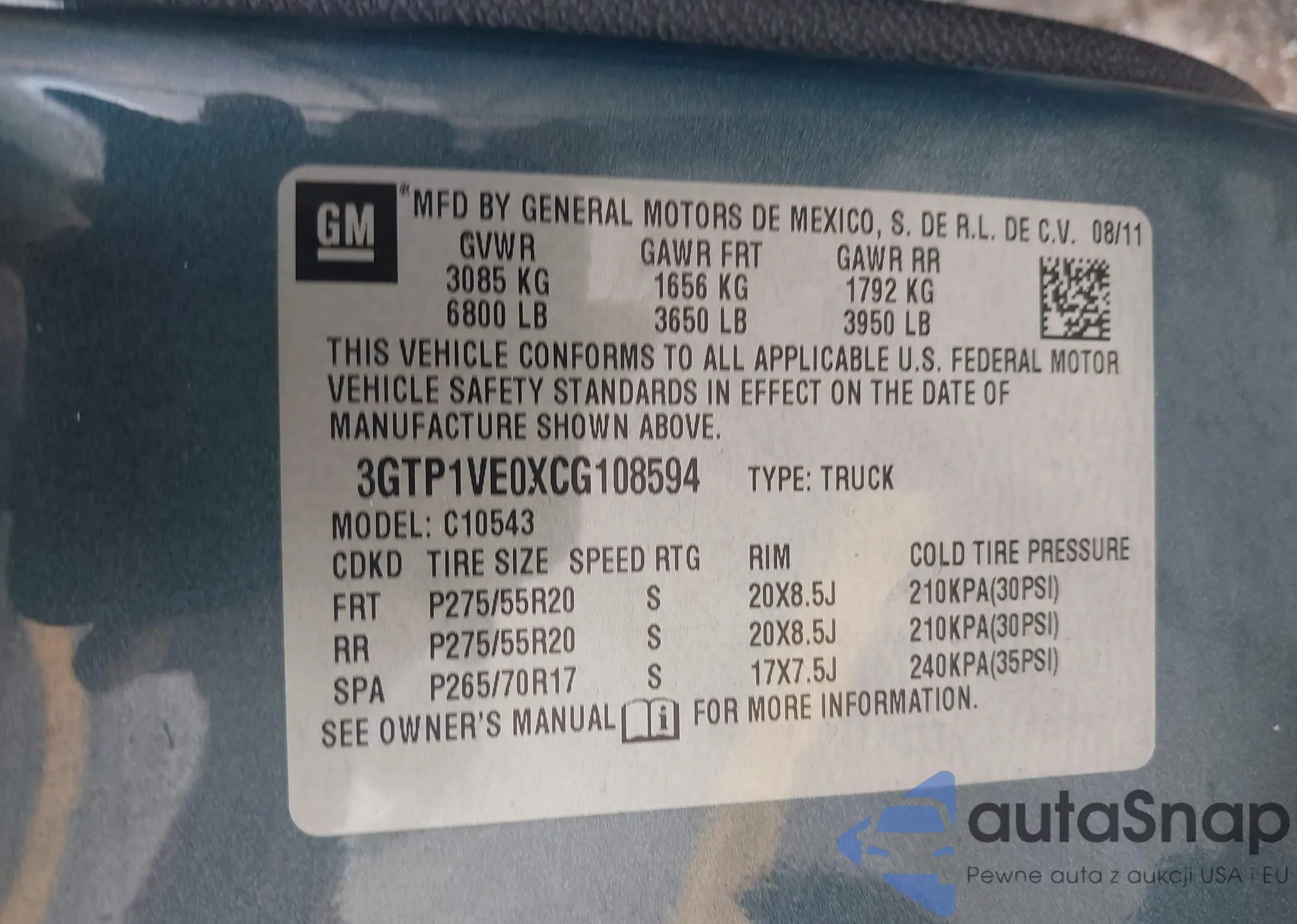 • VIN 3GTP1VE0XCG108594