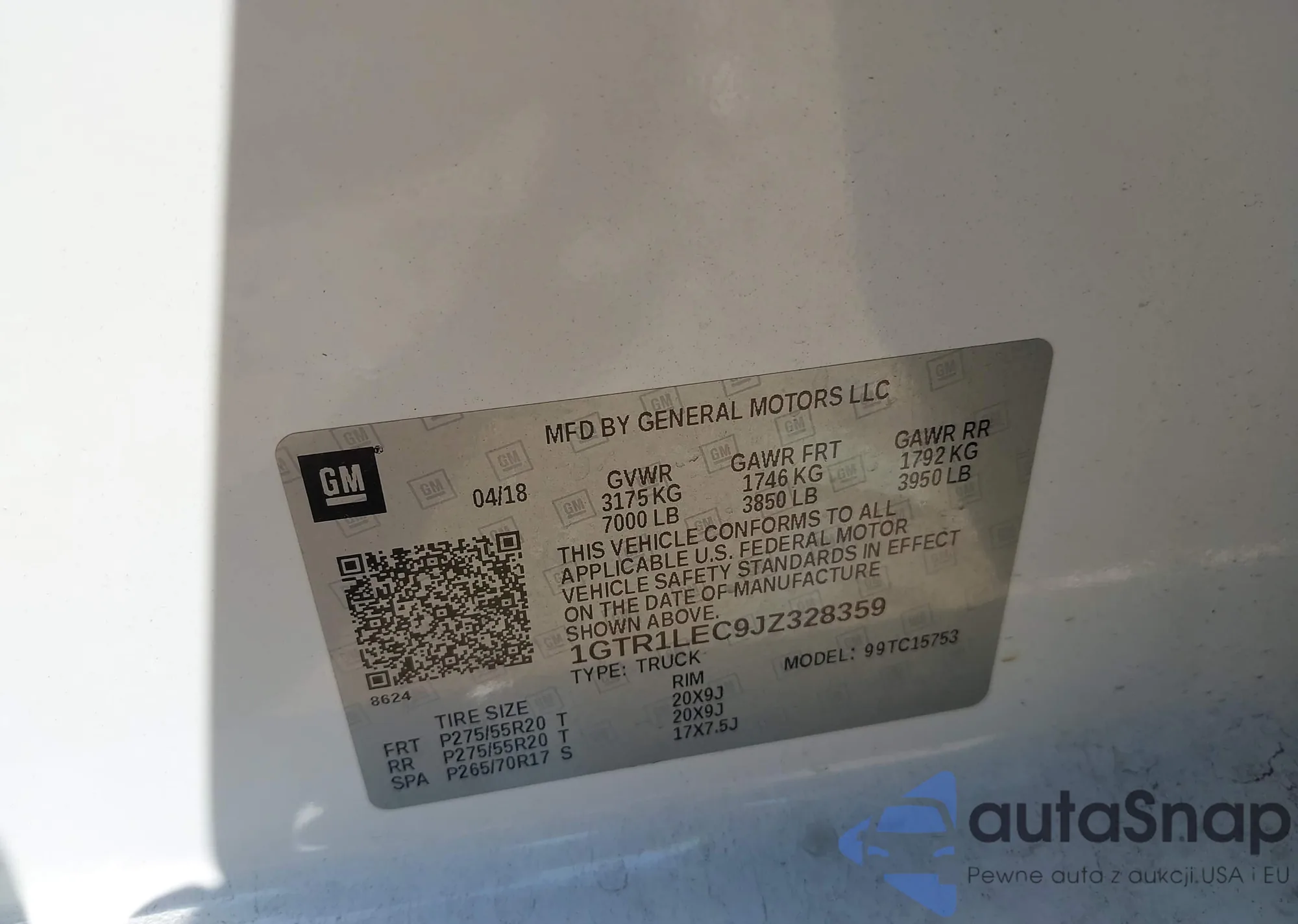 LOT: 43373294 VIN: 1GTR1LEC9JZ328359