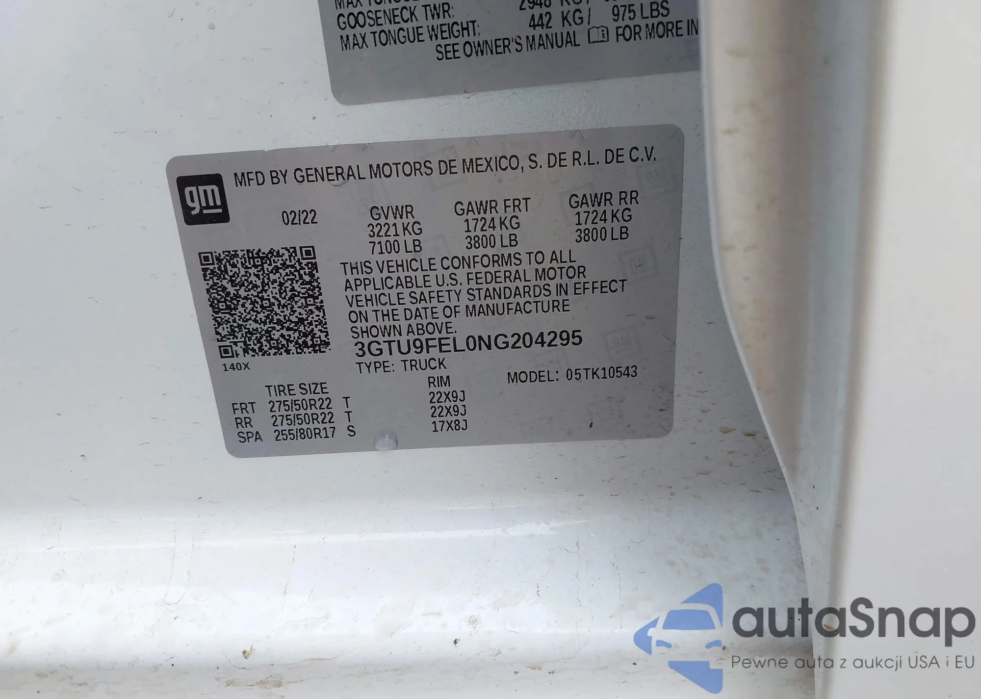 • VIN 3GTU9FEL0NG204295