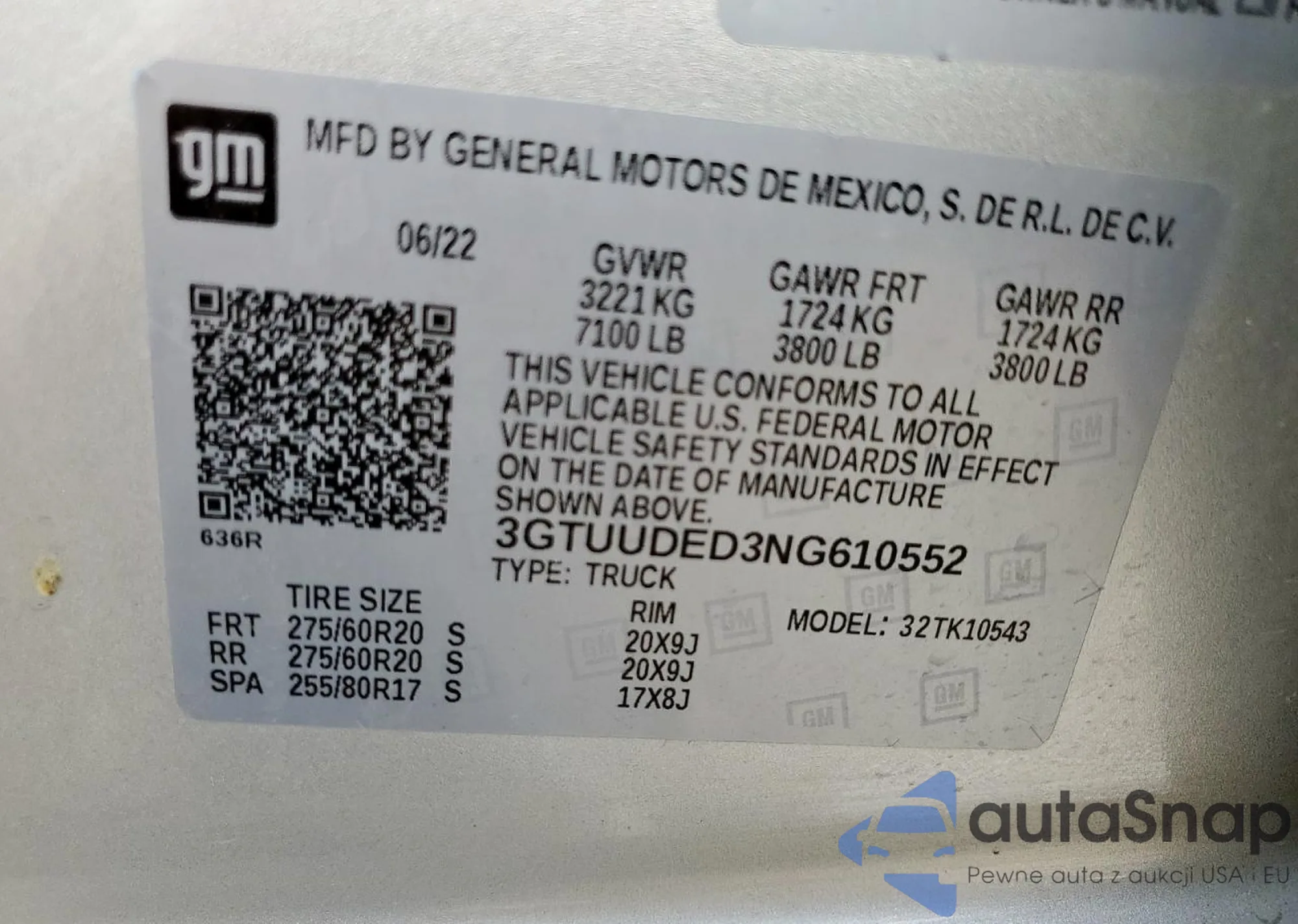 • VIN 3GTUUDED3NG610552
