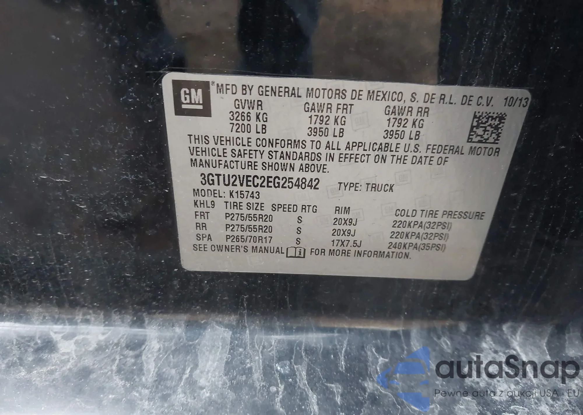 • VIN 3GTU2VEC2EG254842