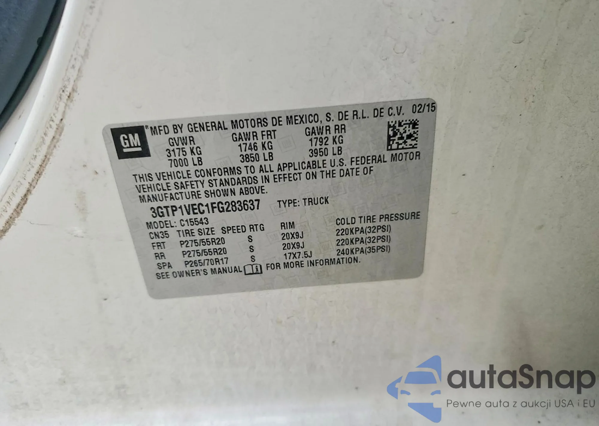 LOT: 73848165 VIN: 3GTP1VEC1FG283637