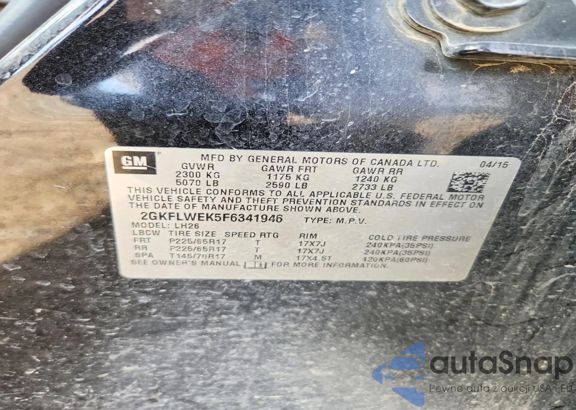 • VIN 2GKFLWEK5F6341946