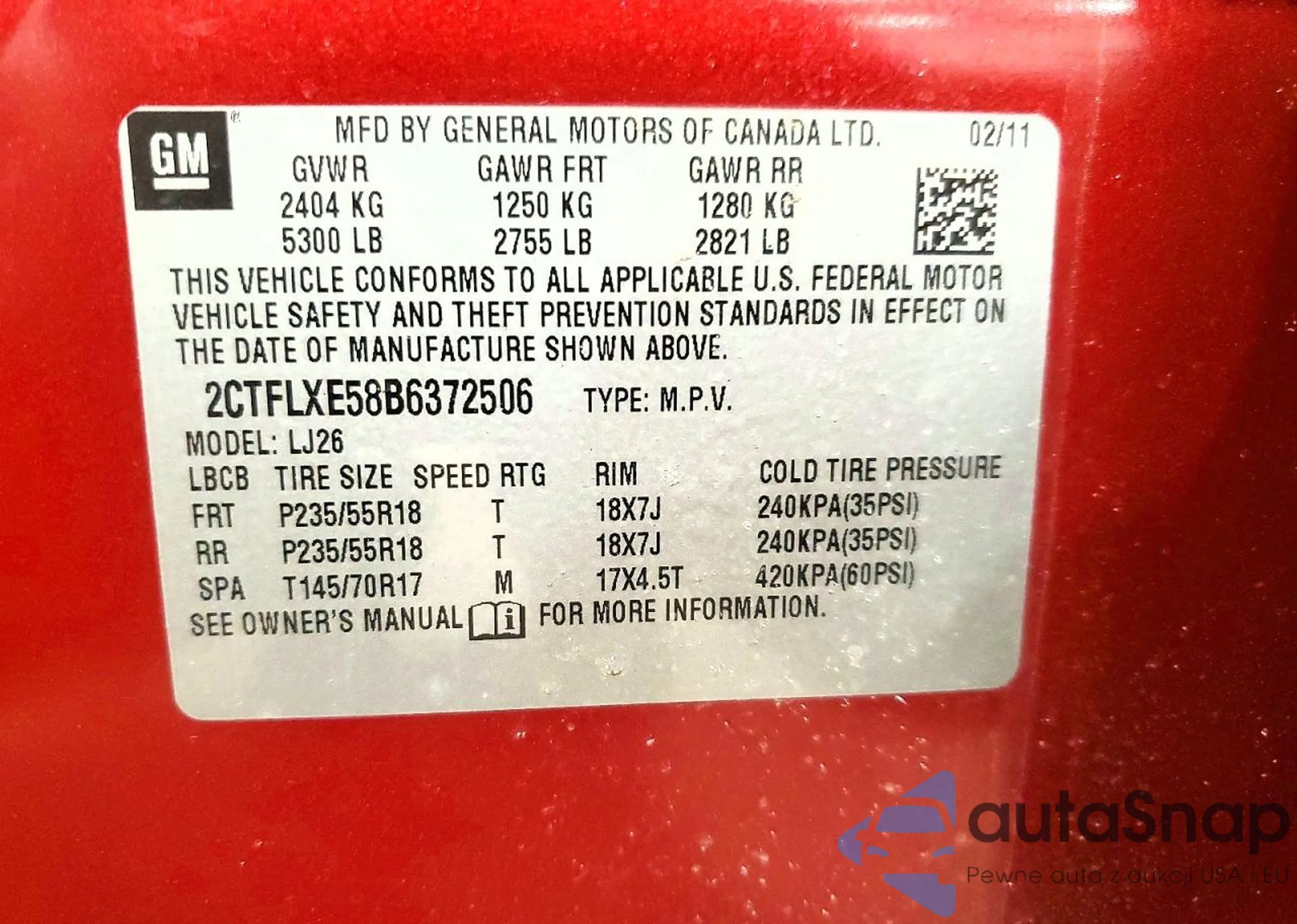 • VIN 2CTFLXE58B6372506