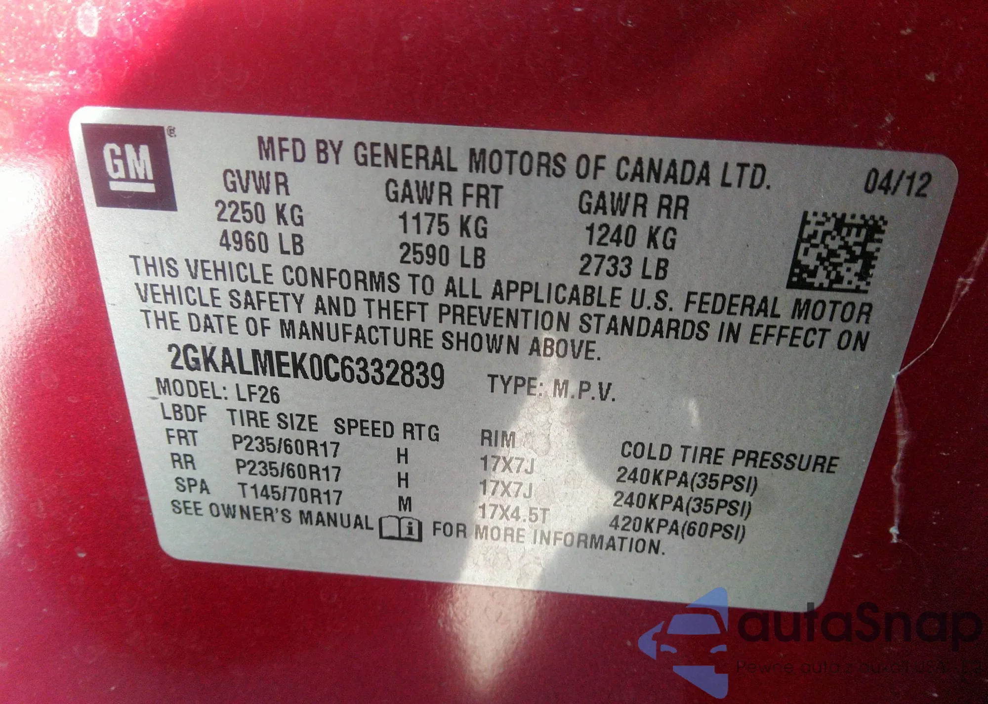 • VIN 2GKALMEK0C6332839