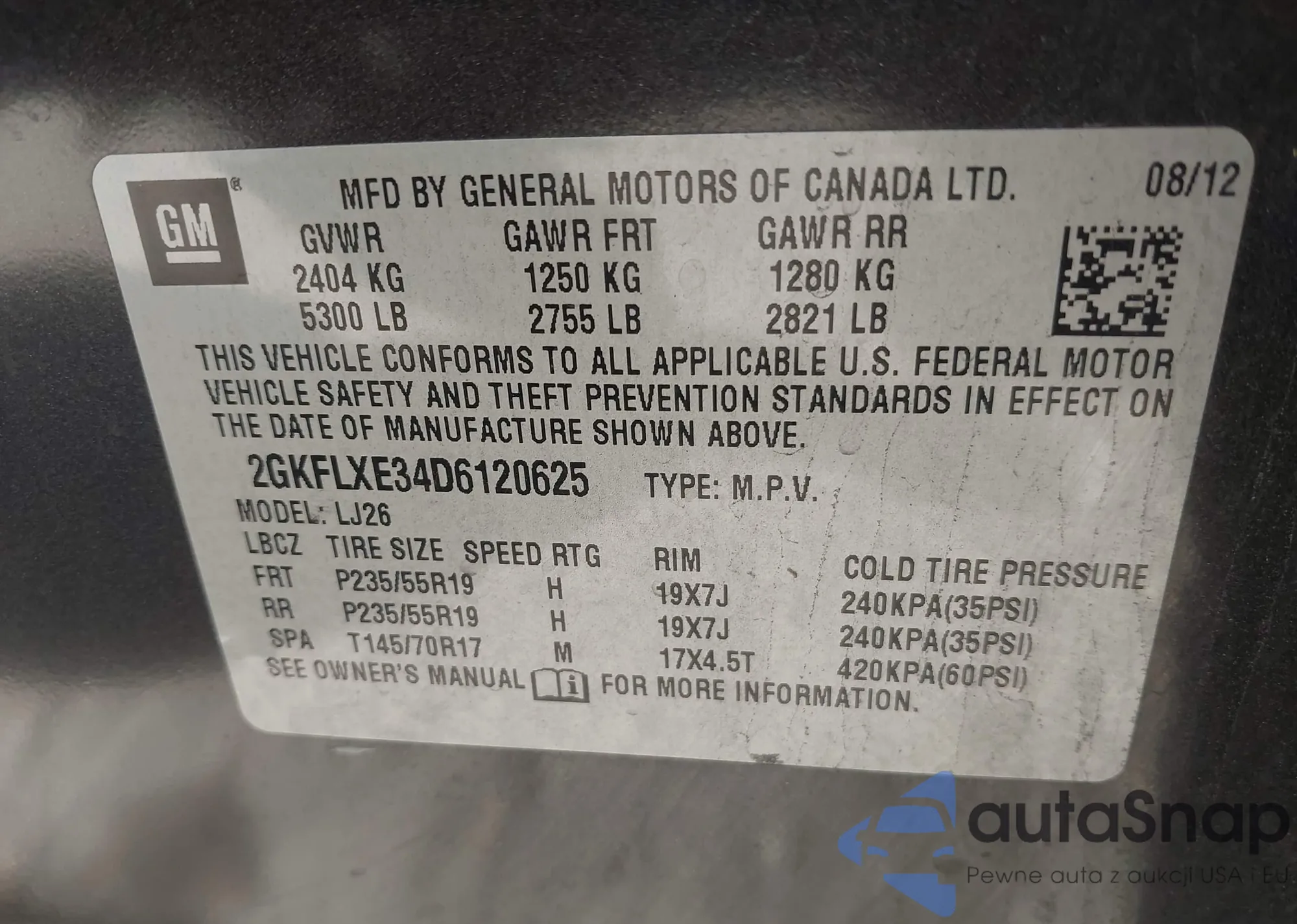• VIN 2GKFLXE34D6120625