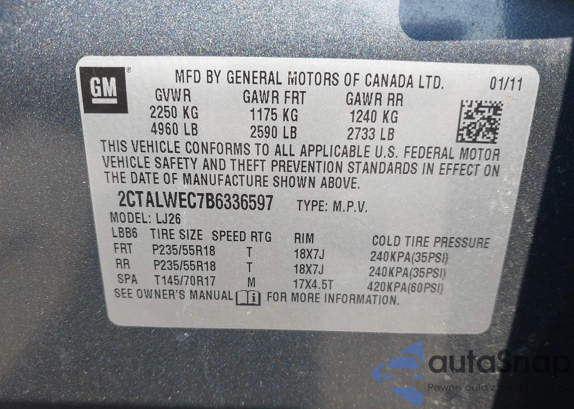 • VIN 2CTALWEC7B6336597