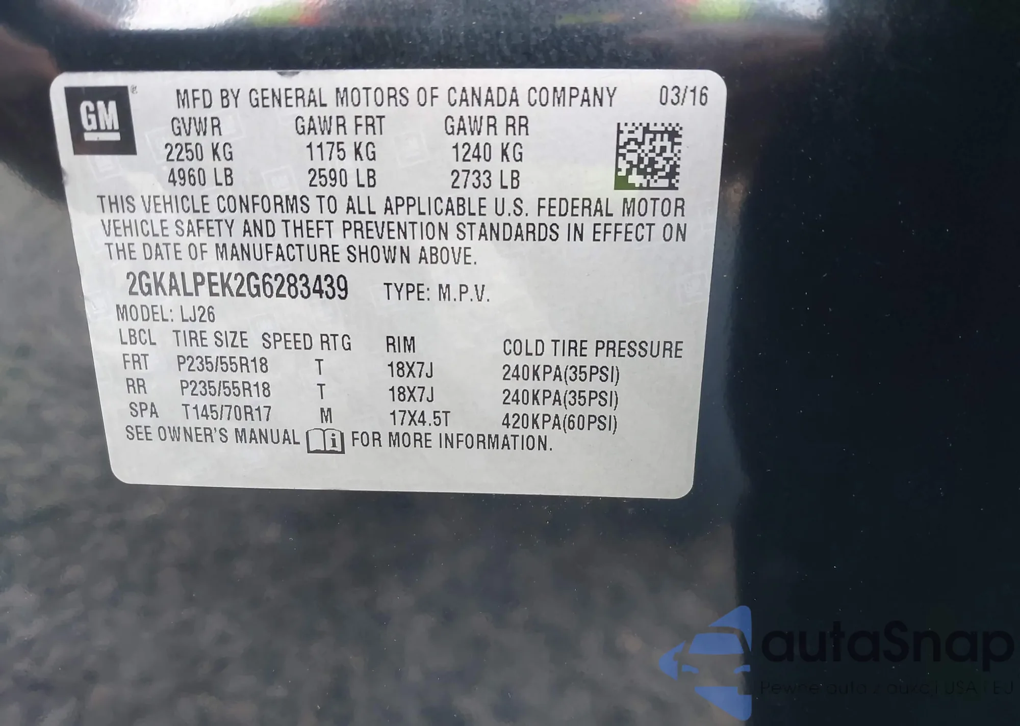• VIN 2GKALPEK2G6283439