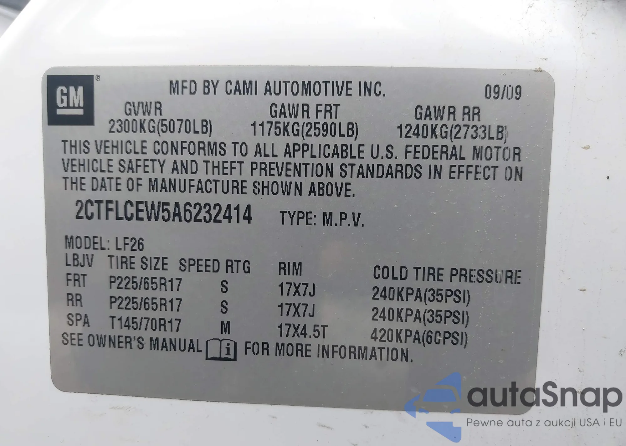 • VIN 2CTFLCEW5A6232414